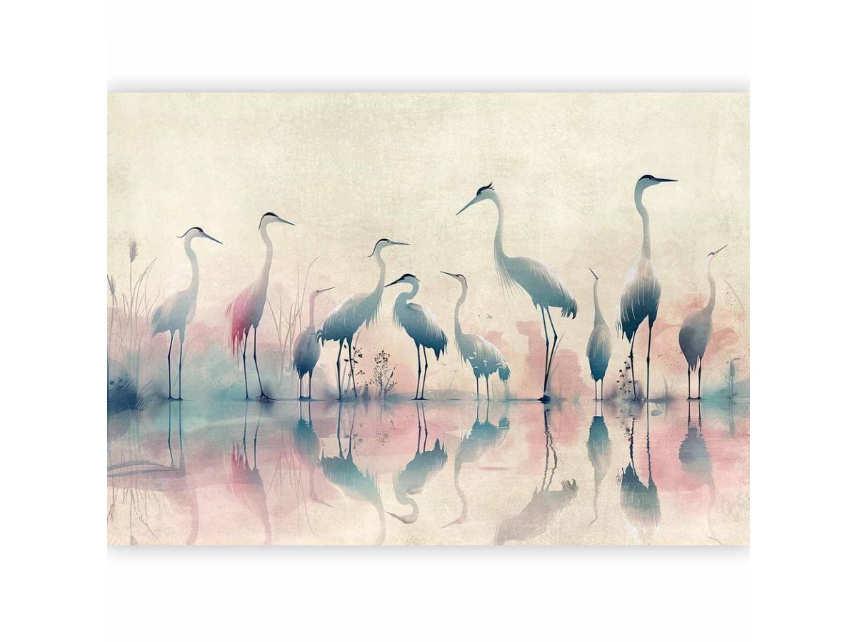 Papier peint - Birds by the lake - herons painted in watercolour in delicate grey and pink colours