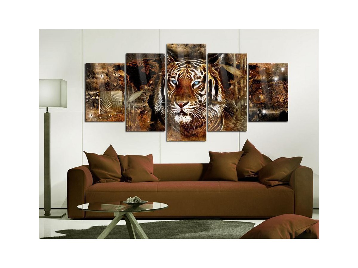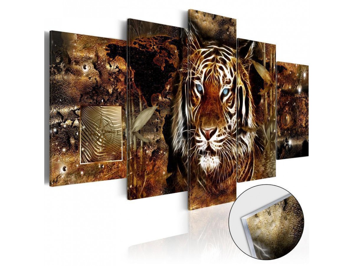Le tableau réalisé sur le verre acrylique "Tableau sur verre acrylique - Golden Jungle" est une excellente idée pour le décor des intérieurs modernes. Celui-ci est une solution pour les amateur d’idées non conventionnelles et représente une alternative intéressante pour les décorations murales traditionnelles ex: en tant que panneau en verre ou verre décoratif de cuisine. L’impression sur verre acrylique est un attrape oeil grâce à l’effet de profondeur et sera sublimer les salles de réceptions. C’est grâce à l’utilisation de nouvelles technologies d’impression et de haute qualité de pigment que le tableau est doté d’une extrême brillance. Les tableaux sur verre acryliques sont légers, faciles à nettoyer et résistant à l’humidité, ainsi le tableau fait ses preuves dans tous les intérieurs aussi bien dans un salon, qu’une chambre, salle de bain et même en terrasse. Grâce à la transparence du verre acrylique graphique, la lumière le transperce et lui fait gagné un effet 3D.