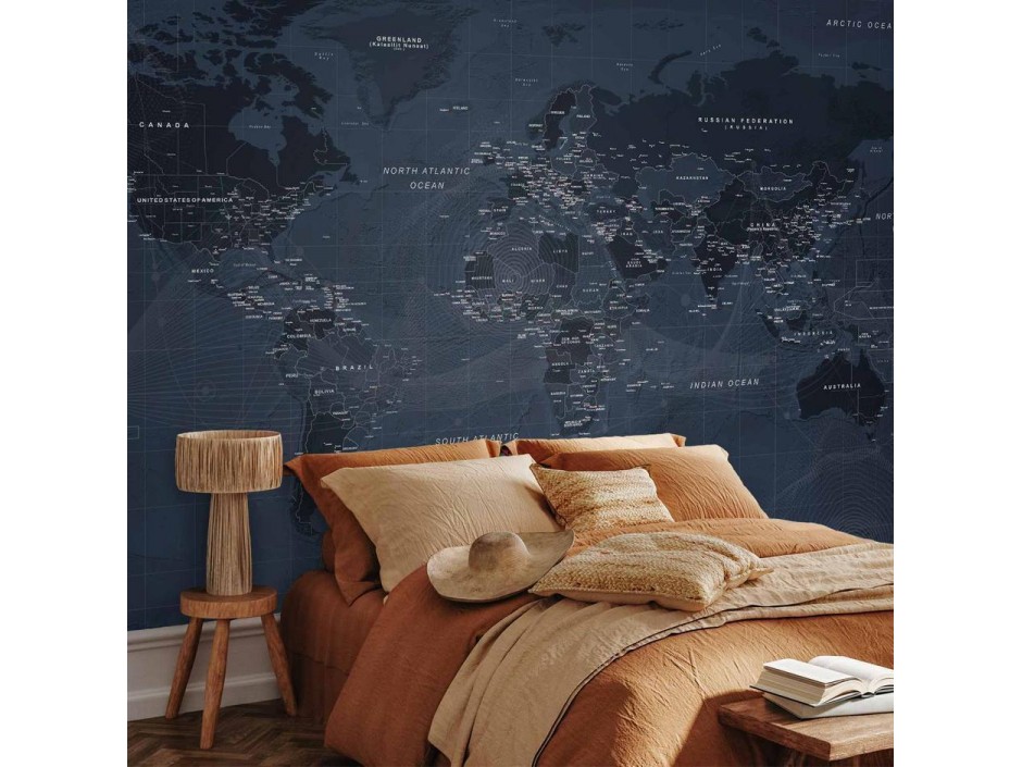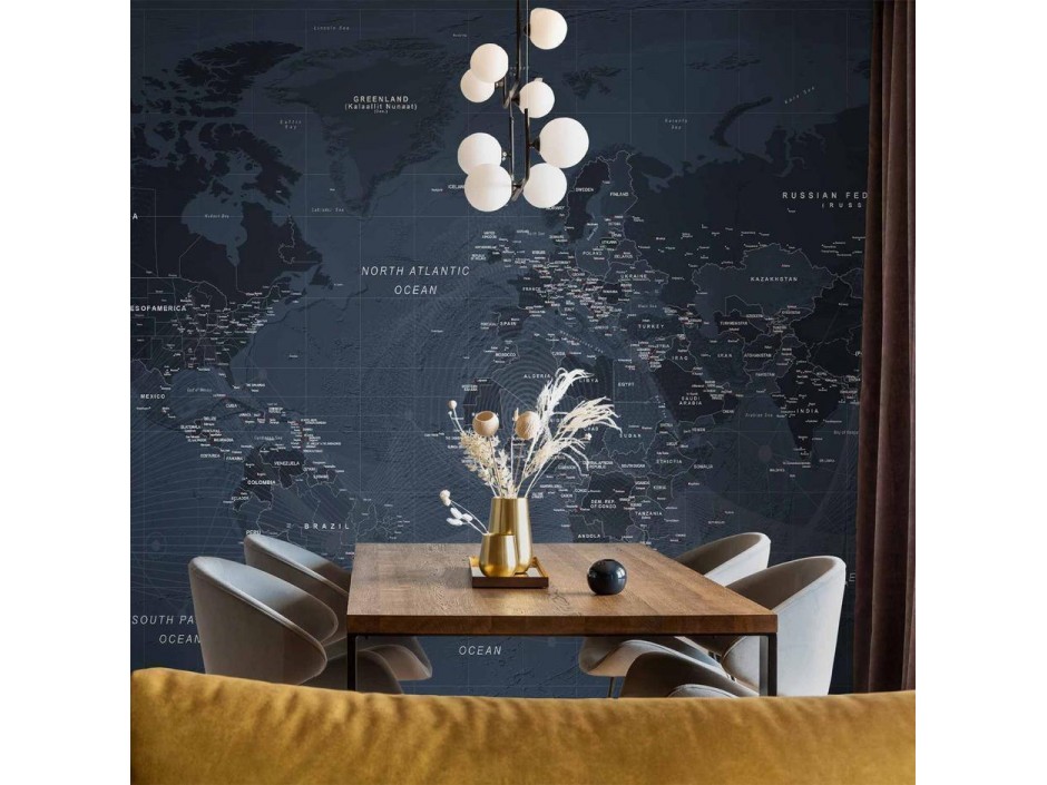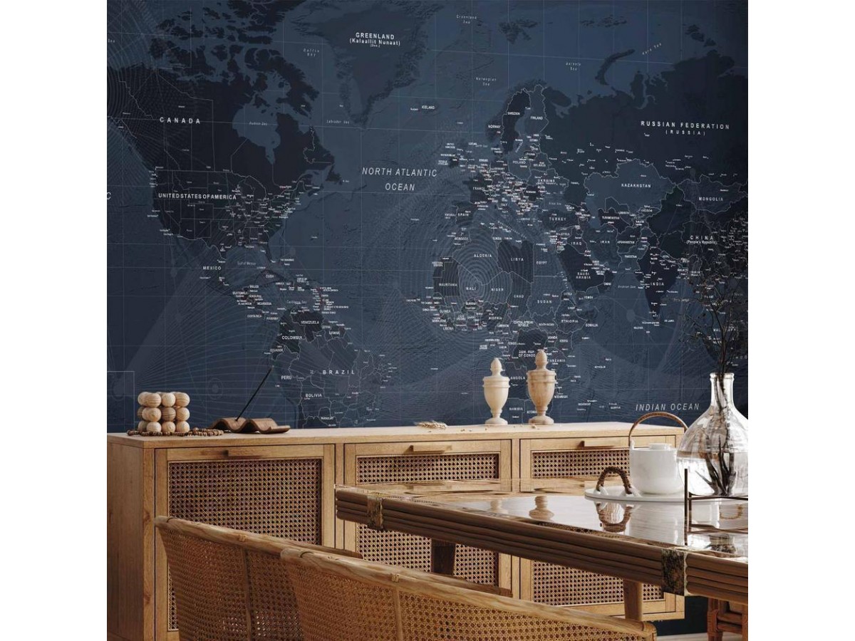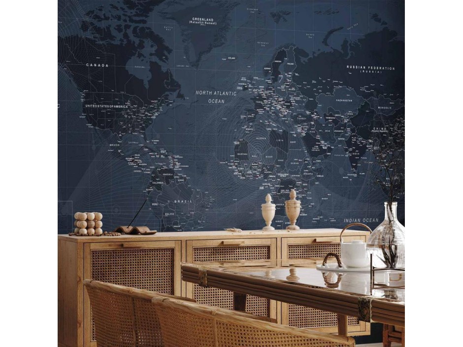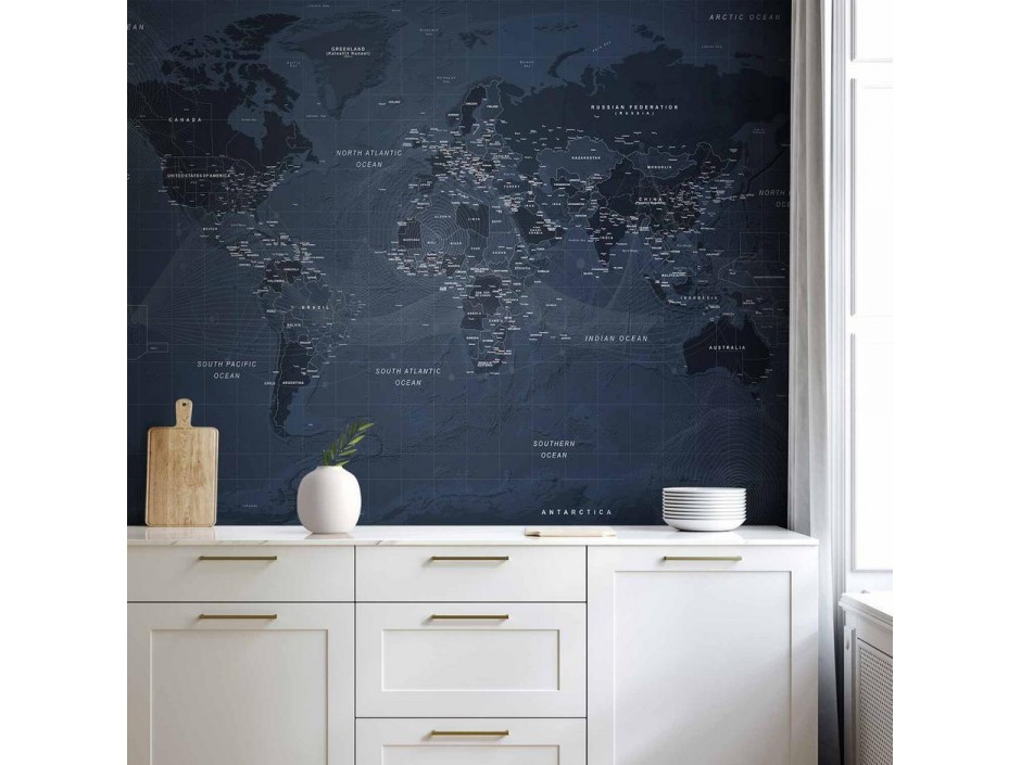 Papier peintUn "Papier peint - World map in blue - continents with inscriptions in English" disponible dans notre offre est une solution simple et rapide pour des personnes qui veulent redonner une nouvelle vie à leur intérieur. En...