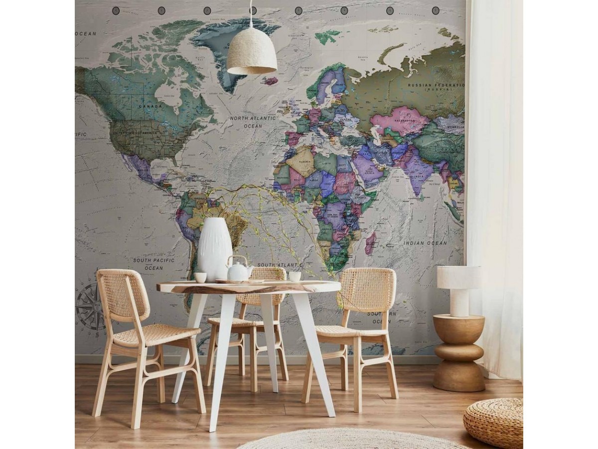 Un "Papier peint - Geography study - world map with signed countries in English" disponible dans notre offre est une solution simple et rapide pour des personnes qui veulent redonner une nouvelle vie à leur intérieur. En effet, le "Papier peint - Geography study - world map with signed countries in English" autocollant vous permet de changer complètement le look de vos murs et l'atmosphère de la pièce en peu de temps. Le papier peint masque également les imperfections des murs et apporte une sensation de fraîcheur à la pièce. Un papier peint pour habiller vos murs est un élément de la décoration d’intérieur qui offre une multitude de possibilités décoratives. En effet, un papier peint bien choisi vous permet d'obtenir un effet visuel unique en tout lieu. En utilisant des motifs et des couleurs de papier peint intissé bien choisis, nous pouvons agrandir visuellement un salon peu spacieux. Grâce à cela, notre intérieur peut sembler plus grand, plus lumineux et plus spacieux. En plus, grâce à la richesse de motifs et de couleurs, un papier peint panoramique peut transformer votre pièce dans une jungle urbaine, dans une clairière au milieu de la forêt ou dans une rue animée d'une des capitales européennes. Un papier peint panoramique peut être appliqué sur toute la surface des murs ou bien mettre en valeur un mur dominant dans la pièce, par exemple le mur derrière le canapé.