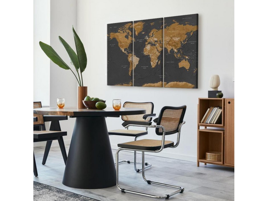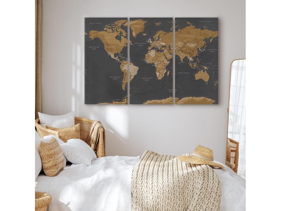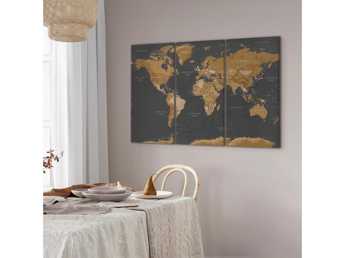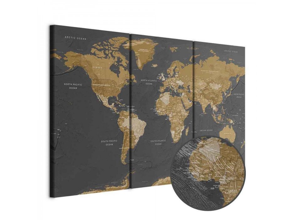 Les tableaux disponibles dans notre offre sont créés à l’aide de l'impression numérique sur toile de la plus haute qualité pour embellir votre intérieur. L’impression numérique sur toile sous la forme d’un tableau unit la tradition de la peinture sur toile avec la technologie moderne. Un effet final de ce mariage est le tableau moderne "Tableau - World Map: Modern Aesthetics" qui peut s’accorder parfaitement avec le style de votre pièce. Les tableaux complètent la décoration de chaque intérieur et lui donnent du caractère. La décoration murale sous la forme des tableaux constitue la dernière touche dans la décoration d’intérieur. Les tableaux déco complètent la décoration de chaque espace et la rendent plus accueillante. Souvent, ils constituent une touche personnelle dans l’intérieur, en reflétant la personnalité et le goût des habitants. Les tableaux déco que nous vous proposons dans notre offre sont des impressions numériques de la plus haute qualité réalisées sur toile. Cette technique de réalisation permet d’obtenir une image possédant une richesse de détails dont les couleurs sont vives et très fraîches. Un tableau moderne s’accorde parfaitement à des intérieurs aménagés dans le style moderne, mais aussi dans le style minimaliste et dans le style zen.
