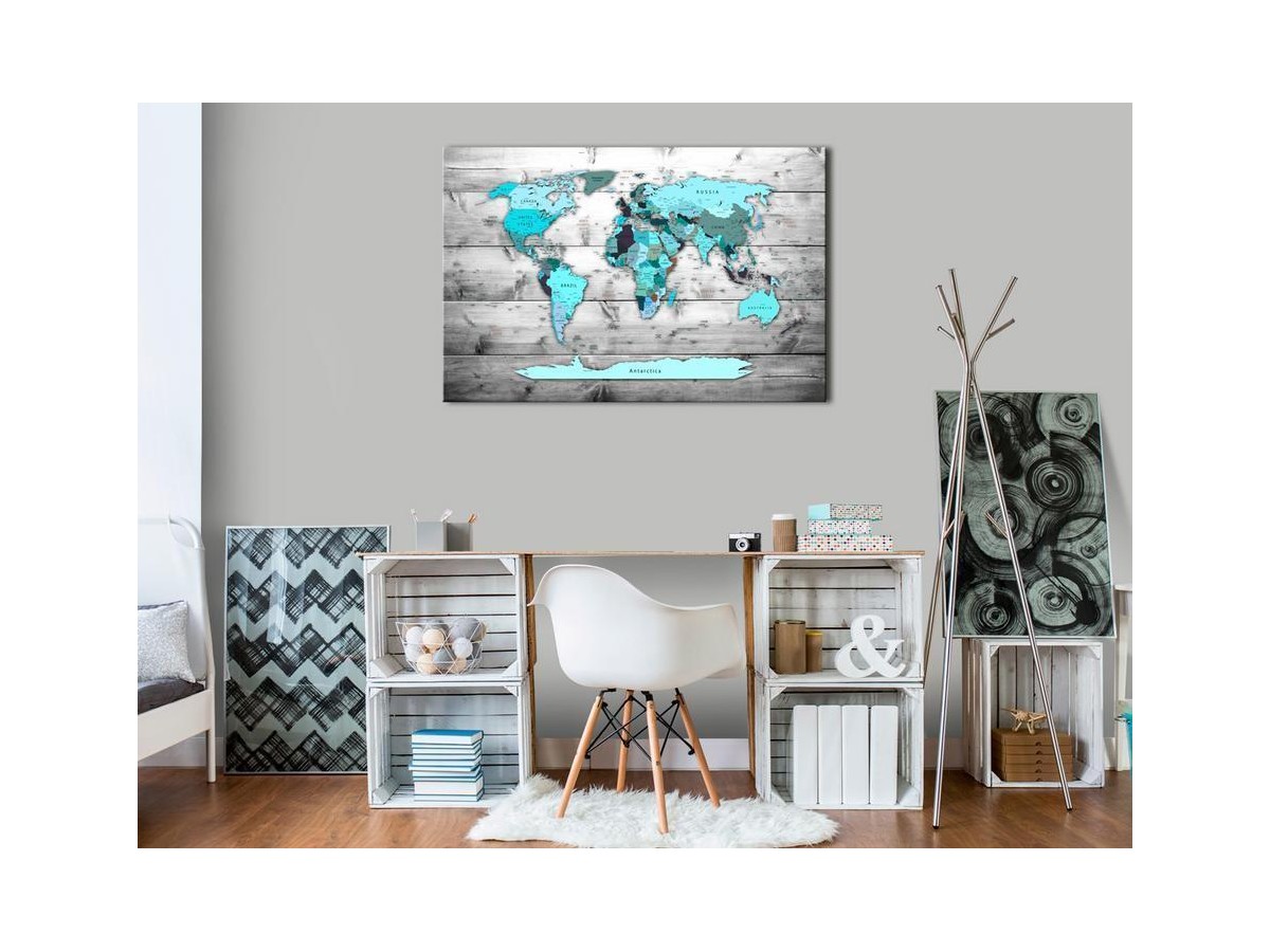 Le tableau en liège "Tableau en liège - Blue Continents" est un produit destiné aux personnes recherchant des décorations murales originales. Le matériau écologique et son motif intéressant font en sorte qu’un simple tableau en liège devient un accessoire de style, que vous pouvez utiliser de différentes manières. Vous pouvez y planter des punaises, indiquer les endroits visités sur une carte ou encore y placer des notes. Le tableau en liège "Tableau en liège - Blue Continents" est plus léger que les décorations murales traditionnelles. Grâce à cela les tableaux décoratifs en liège peuvent être suspendus sur tous les endroits souhaités dans votre logement ou bureau. La toile imprimée est placée sur la plaque en liège, grâce à quoi les couleurs d’impression sont bien définies et les détails — même les plus petits — sont restitués. Vous pouvez créer un motif personnalisé sur votre mur en y plantant des punaises ou notes!