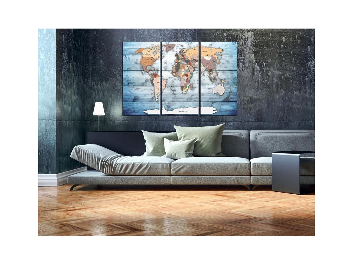 Le tableau en liège "Tableau en liège - Sapphire Travels" est un produit destiné aux personnes recherchant des décorations murales originales. Le matériau écologique et son motif intéressant font en sorte qu’un simple tableau en liège devient un accessoire de style, que vous pouvez utiliser de différentes manières. Vous pouvez y planter des punaises, indiquer les endroits visités sur une carte ou encore y placer des notes. Le tableau en liège "Tableau en liège - Sapphire Travels" est plus léger que les décorations murales traditionnelles. Grâce à cela les tableaux décoratifs en liège peuvent être suspendus sur tous les endroits souhaités dans votre logement ou bureau. La toile imprimée est placée sur la plaque en liège, grâce à quoi les couleurs d’impression sont bien définies et les détails — même les plus petits — sont restitués. Vous pouvez créer un motif personnalisé sur votre mur en y plantant des punaises ou notes!