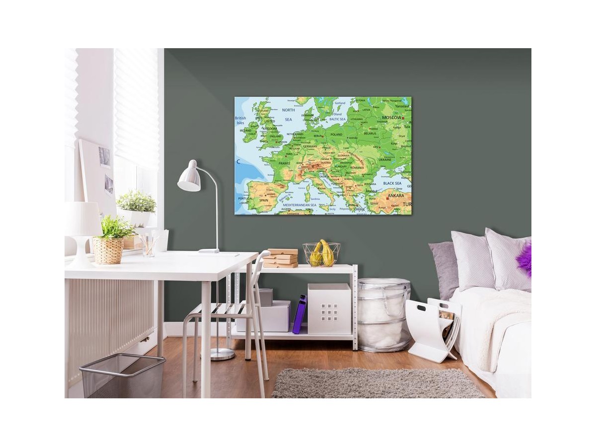 Le tableau en liège "Tableau en liège - Europe" est un produit destiné aux personnes recherchant des décorations murales originales. Le matériau écologique et son motif intéressant font en sorte qu’un simple tableau en liège devient un accessoire de style, que vous pouvez utiliser de différentes manières. Vous pouvez y planter des punaises, indiquer les endroits visités sur une carte ou encore y placer des notes. Le tableau en liège "Tableau en liège - Europe" est plus léger que les décorations murales traditionnelles. Grâce à cela les tableaux décoratifs en liège peuvent être suspendus sur tous les endroits souhaités dans votre logement ou bureau. La toile imprimée est placée sur la plaque en liège, grâce à quoi les couleurs d’impression sont bien définies et les détails — même les plus petits — sont restitués. Vous pouvez créer un motif personnalisé sur votre mur en y plantant des punaises ou notes!
