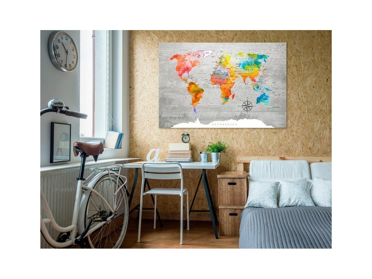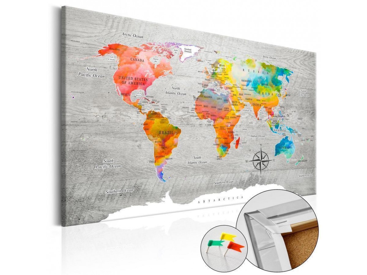 Le tableau en liège "Tableau en liège - Multicolored Travels" est un produit destiné aux personnes recherchant des décorations murales originales. Le matériau écologique et son motif intéressant font en sorte qu’un simple tableau en liège devient un accessoire de style, que vous pouvez utiliser de différentes manières. Vous pouvez y planter des punaises, indiquer les endroits visités sur une carte ou encore y placer des notes. Le tableau en liège "Tableau en liège - Multicolored Travels" est plus léger que les décorations murales traditionnelles. Grâce à cela les tableaux décoratifs en liège peuvent être suspendus sur tous les endroits souhaités dans votre logement ou bureau. La toile imprimée est placée sur la plaque en liège, grâce à quoi les couleurs d’impression sont bien définies et les détails — même les plus petits — sont restitués. Vous pouvez créer un motif personnalisé sur votre mur en y plantant des punaises ou notes!