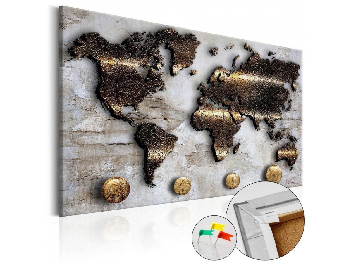 Le tableau en liège "Tableau en liège - Golden Journey" est un produit destiné aux personnes recherchant des décorations murales originales. Le matériau écologique et son motif intéressant font en sorte qu’un simple tableau en liège devient un accessoire de style, que vous pouvez utiliser de différentes manières. Vous pouvez y planter des punaises, indiquer les endroits visités sur une carte ou encore y placer des notes. Le tableau en liège "Tableau en liège - Golden Journey" est plus léger que les décorations murales traditionnelles. Grâce à cela les tableaux décoratifs en liège peuvent être suspendus sur tous les endroits souhaités dans votre logement ou bureau. La toile imprimée est placée sur la plaque en liège, grâce à quoi les couleurs d’impression sont bien définies et les détails — même les plus petits — sont restitués. Vous pouvez créer un motif personnalisé sur votre mur en y plantant des punaises ou notes!