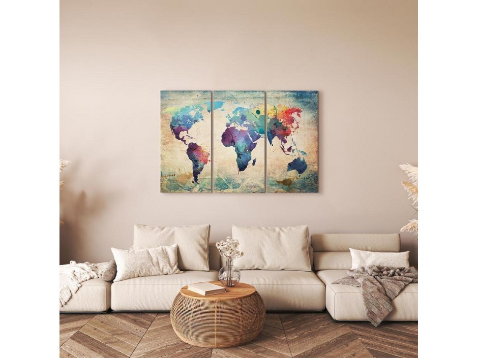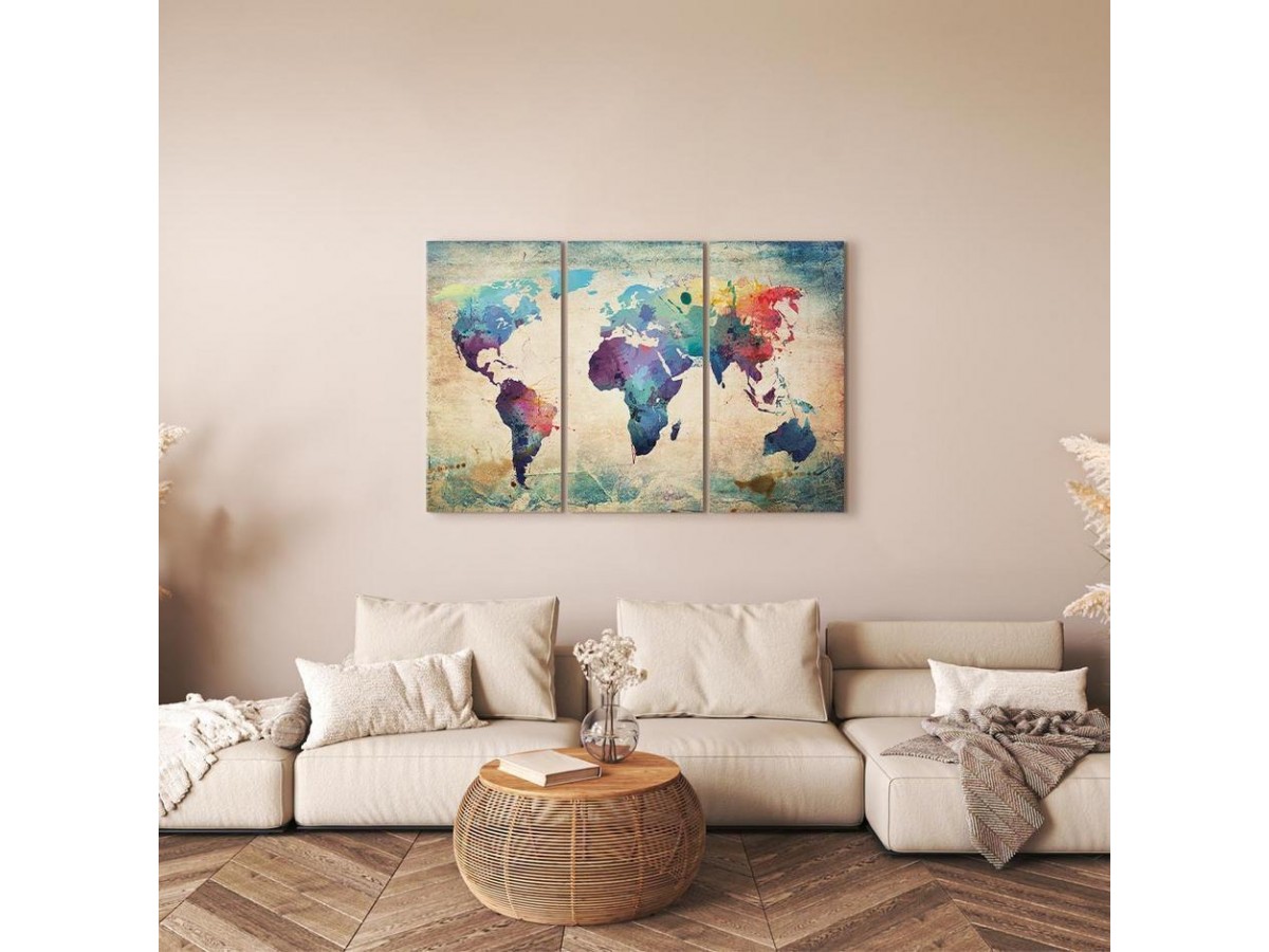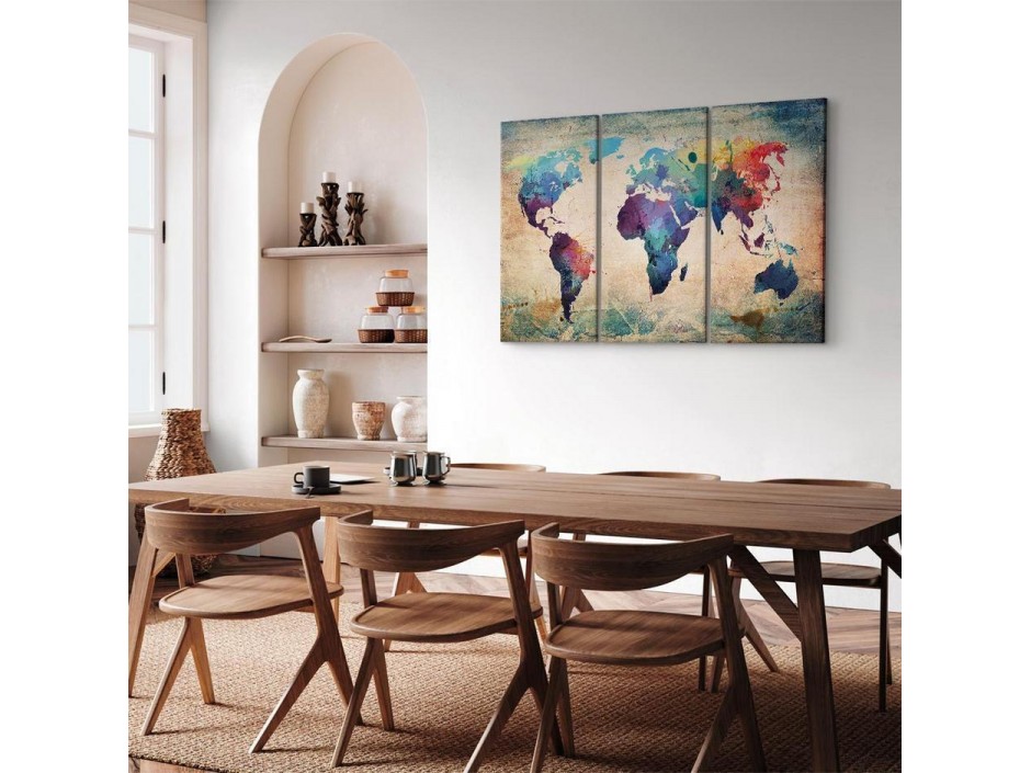Les tableaux disponibles dans notre offre sont créés à l’aide de l'impression numérique sur toile de la plus haute qualité pour embellir votre intérieur. L’impression numérique sur toile sous la forme d’un tableau unit la tradition de la peinture sur toile avec la technologie moderne. Un effet final de ce mariage est le tableau moderne "Tableau - Rainbow Map (triptych)" qui peut s’accorder parfaitement avec le style de votre pièce. Les tableaux complètent la décoration de chaque intérieur et lui donnent du caractère. La décoration murale sous la forme des tableaux constitue la dernière touche dans la décoration d’intérieur. Les tableaux déco complètent la décoration de chaque espace et la rendent plus accueillante. Souvent, ils constituent une touche personnelle dans l’intérieur, en reflétant la personnalité et le goût des habitants. Les tableaux déco que nous vous proposons dans notre offre sont des impressions numériques de la plus haute qualité réalisées sur toile. Cette technique de réalisation permet d’obtenir une image possédant une richesse de détails dont les couleurs sont vives et très fraîches. Un tableau moderne s’accorde parfaitement à des intérieurs aménagés dans le style moderne, mais aussi dans le style minimaliste et dans le style zen.