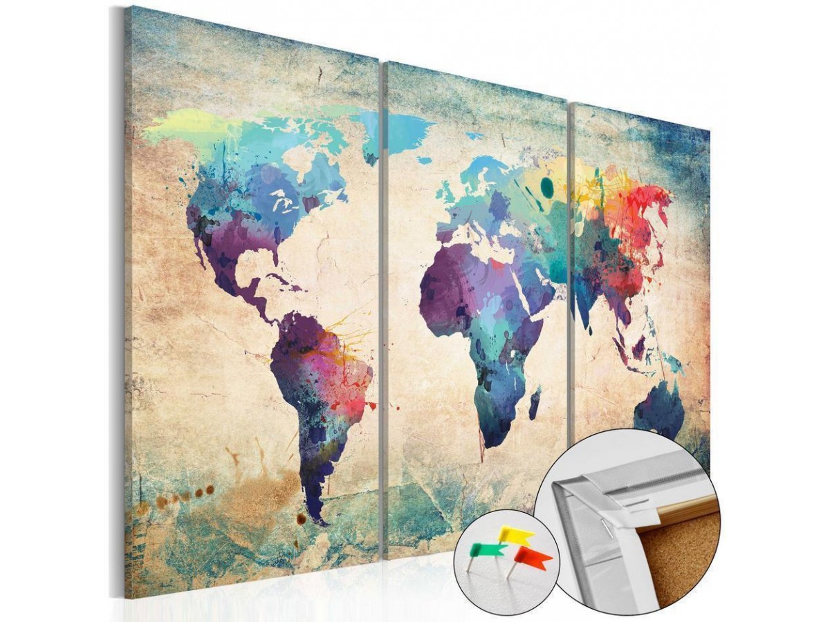 Le tableau en liège "Tableau en liège - Rainbow Map" est un produit destiné aux personnes recherchant des décorations murales originales. Le matériau écologique et son motif intéressant font en sorte qu’un simple tableau en liège devient un accessoire de style, que vous pouvez utiliser de différentes manières. Vous pouvez y planter des punaises, indiquer les endroits visités sur une carte ou encore y placer des notes. Le tableau en liège "Tableau en liège - Rainbow Map" est plus léger que les décorations murales traditionnelles. Grâce à cela les tableaux décoratifs en liège peuvent être suspendus sur tous les endroits souhaités dans votre logement ou bureau. La toile imprimée est placée sur la plaque en liège, grâce à quoi les couleurs d’impression sont bien définies et les détails — même les plus petits — sont restitués. Vous pouvez créer un motif personnalisé sur votre mur en y plantant des punaises ou notes!