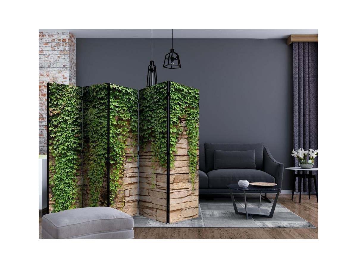 Un paravent décoratif "Paravent - Ivy wall II" est composé de panneaux orientables, appelés volets, en bois encadrés d'un châssis de bois et réunis par des charnières. Le paravent décoratif disponible dans notre offre se compose de trois ou de cinq parties. Tous les paravents que nous proposons ont une impression de haute qualité sur l’entoilage qui peut être une belle décoration d'intérieur. L'entoilage d’un paravent déco est tendu sur un cadre en bois solide et léger en même temps. Les panneaux sont finis avec un ruban de satin. Les charnières métalliques sont durables et très solides.Caractéristique technique