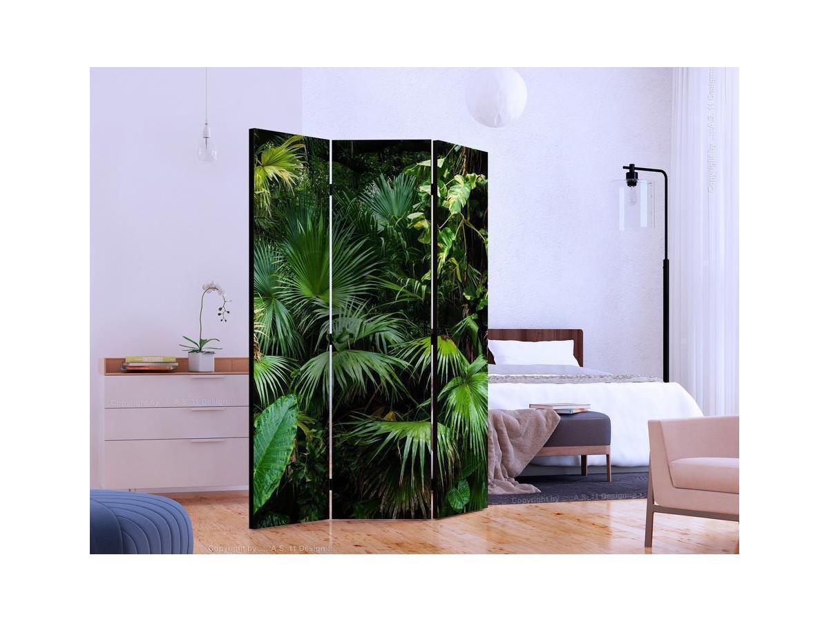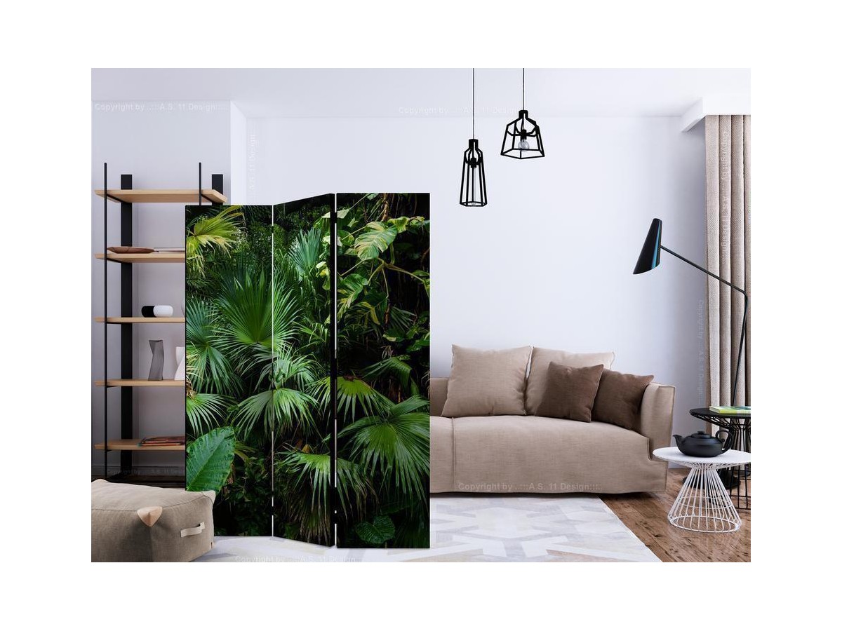 Les paravents décoratifs sont certainement une idée originale dans le domaine de la décoration intérieure. Les paravents remplissent un rôle décoratif, mais aussi bien pratique et fonctionnel. En effet, un paravent intérieur "Paravent - Sunny Jungle" est un meuble formant une cloison amovible et repliable qui peut servir pour délimiter un espace et diviser une grande pièce en deux espaces séparés. Le paravent intérieur est une invention qui est apparue pour la première fois en Chine. Depuis le début de leur existence, les paravents remplissaient des différentes fonctions, comme protéger contre les courants d'air ou bien encore créer un espace isolé pour l'intimité. De nos jours, le paravent intérieur est une belle décoration intérieure, qui permet aussi de gérer l'espace d’une ou de plusieurs pièces selon notre volonté. Le paravent intérieur est également utilisé dans les locaux de service, comme un coiffeur, un cabinet médical ou un bureau comptable pour créer un espace propice à l’intimité ou bien encore à la concentration.