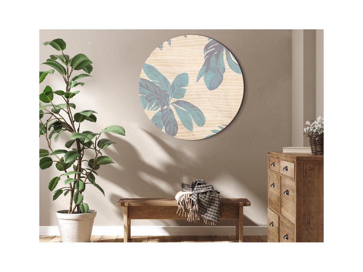 Tableaux ronds comme décoration hors du communLe tableau rond ? Pourquoi pas ! Hors du commun et se distinguant des autres produits sur le marché, le tableau rond "Tableau rond - Palm trees behind the mist - Showy palm leaves in a soft...