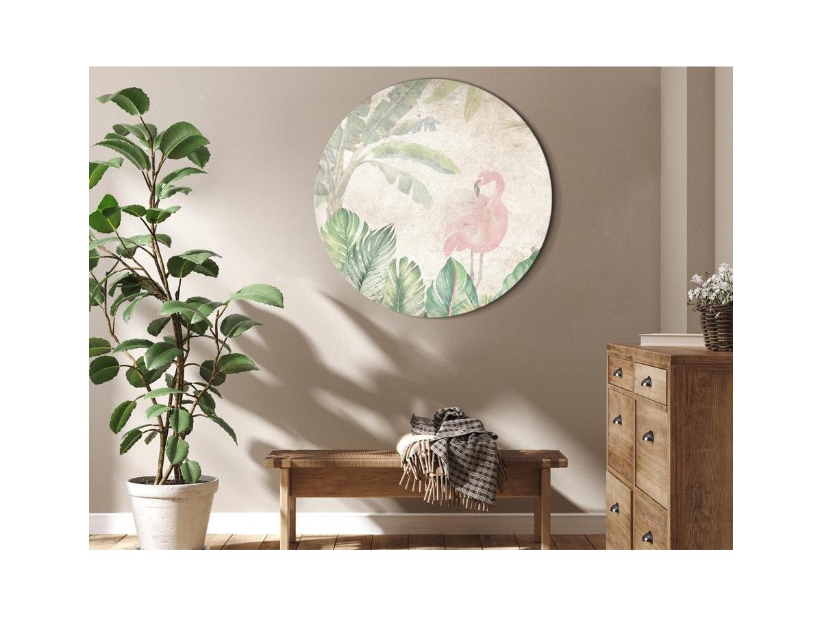 Tableaux ronds comme décoration hors du communLe tableau rond ? Pourquoi pas ! Hors du commun et se distinguant des autres produits sur le marché, le tableau rond "Tableau rond - Birds wading among exotic flora - Flamingos amidst lush...