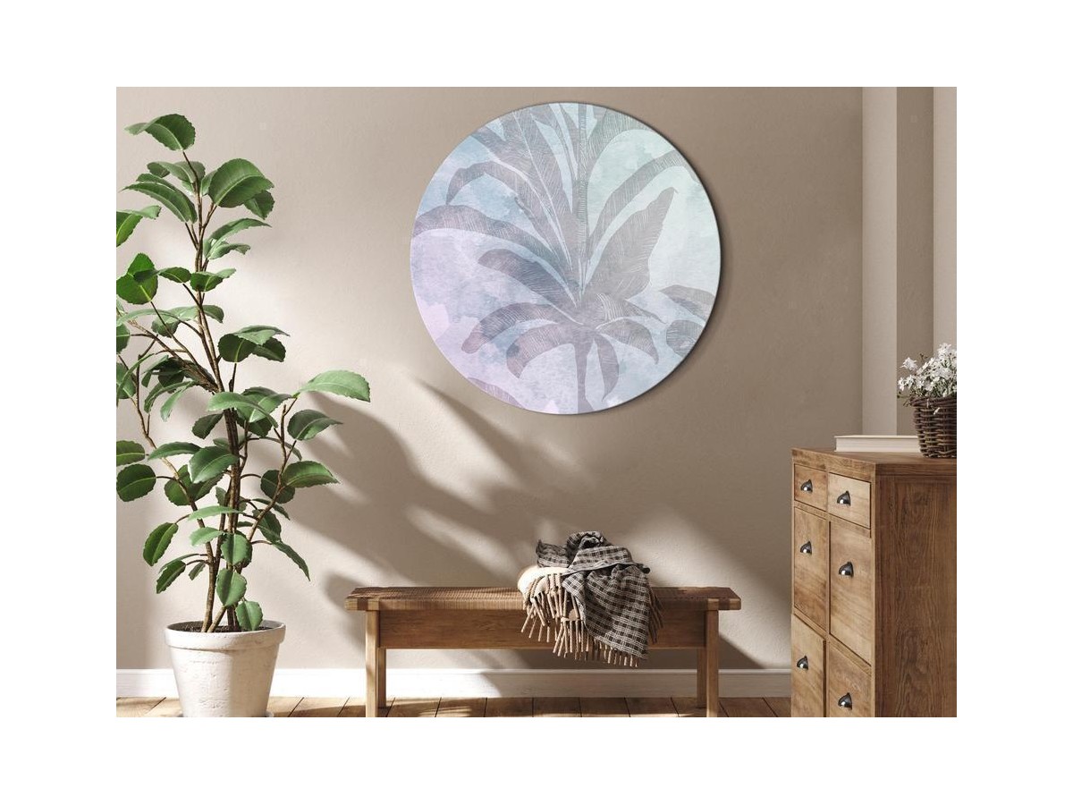 Tableaux ronds comme décoration hors du communLe tableau rond ? Pourquoi pas ! Hors du commun et se distinguant des autres produits sur le marché, le tableau rond "Tableau rond - Palm trees in the fog - Palm trees among pastel clouds...