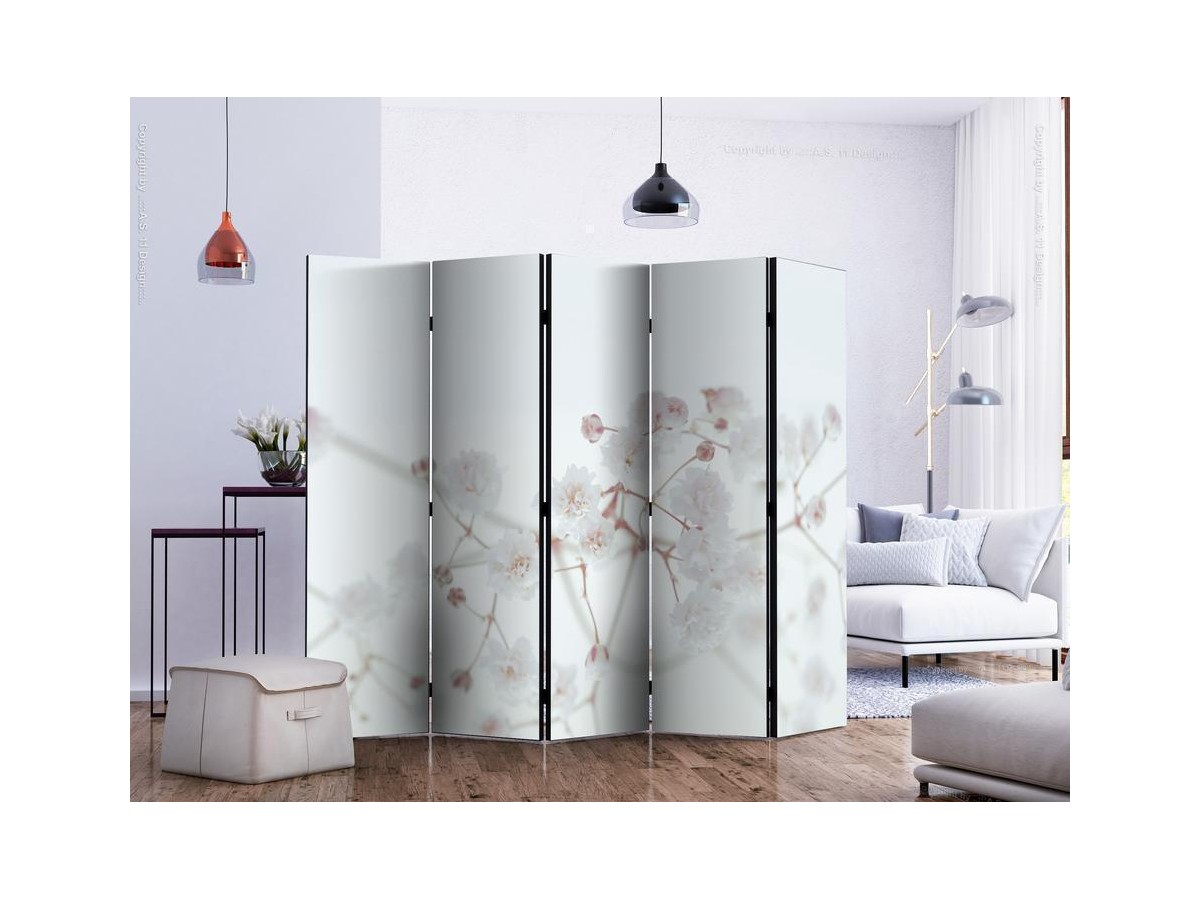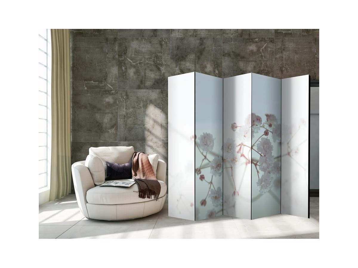 Un paravent décoratif "Paravent - White Flowers II" est composé de panneaux orientables, appelés volets, en bois encadrés d'un châssis de bois et réunis par des charnières. Le paravent décoratif disponible dans notre offre se compose de trois ou de cinq parties. Tous les paravents que nous proposons ont une impression de haute qualité sur l’entoilage qui peut être une belle décoration d'intérieur. L'entoilage d’un paravent déco est tendu sur un cadre en bois solide et léger en même temps. Les panneaux sont finis avec un ruban de satin. Les charnières métalliques sont durables et très solides.Caractéristique technique