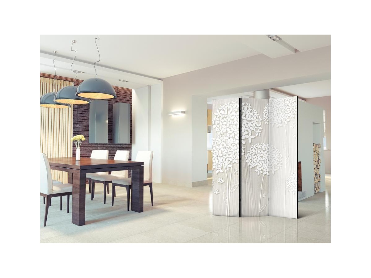Les paravents décoratifs sont certainement une idée originale dans le domaine de la décoration intérieure. Les paravents remplissent un rôle décoratif, mais aussi bien pratique et fonctionnel. En effet, un paravent intérieur "Paravent - Paper Dandelions" est un meuble formant une cloison amovible et repliable qui peut servir pour délimiter un espace et diviser une grande pièce en deux espaces séparés. Le paravent intérieur est une invention qui est apparue pour la première fois en Chine. Depuis le début de leur existence, les paravents remplissaient des différentes fonctions, comme protéger contre les courants d'air ou bien encore créer un espace isolé pour l'intimité. De nos jours, le paravent intérieur est une belle décoration intérieure, qui permet aussi de gérer l'espace d’une ou de plusieurs pièces selon notre volonté. Le paravent intérieur est également utilisé dans les locaux de service, comme un coiffeur, un cabinet médical ou un bureau comptable pour créer un espace propice à l’intimité ou bien encore à la concentration.