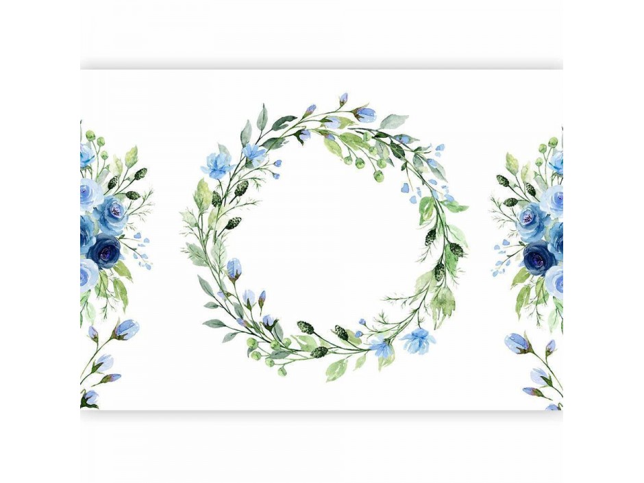 Papier peint - Romantic wreath - plant motif with blue flowers and leaves