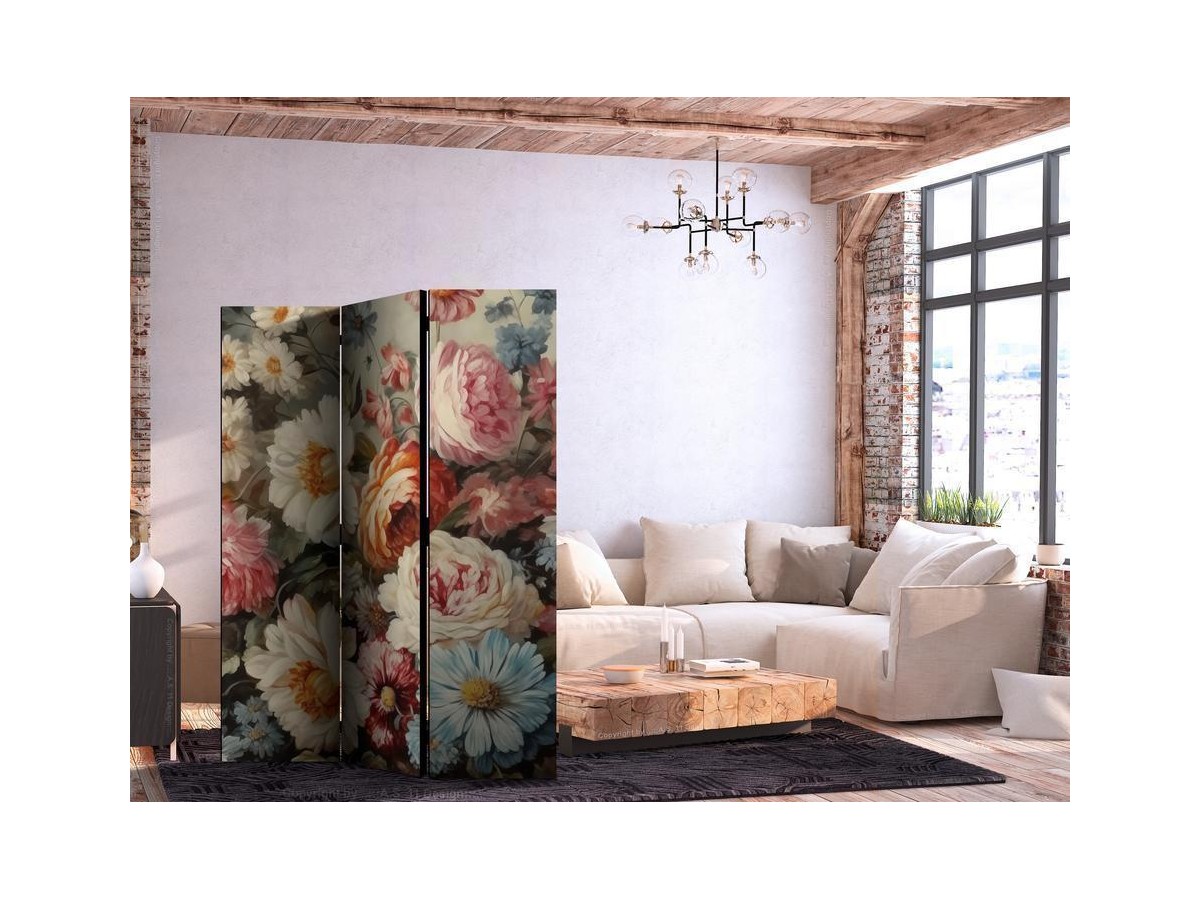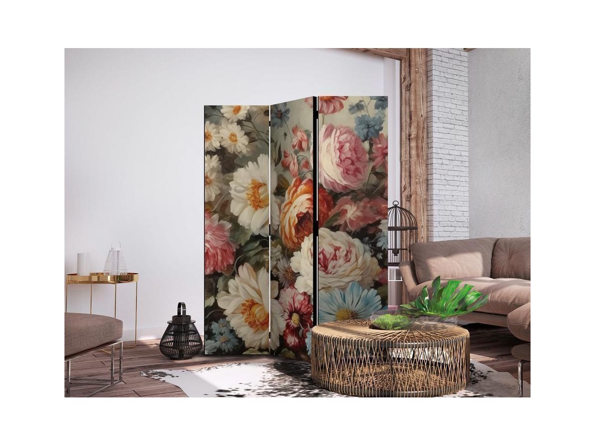 Les paravents décoratifs sont certainement une idée originale dans le domaine de la décoration intérieure. Les paravents remplissent un rôle décoratif, mais aussi bien pratique et fonctionnel. En effet, un paravent intérieur "Paravent - Scent of Nature - Beautiful Garden Flowers in Pastel Colors" est un meuble formant une cloison amovible et repliable qui peut servir pour délimiter un espace et diviser une grande pièce en deux espaces séparés. Le paravent intérieur est une invention qui est apparue pour la première fois en Chine. Depuis le début de leur existence, les paravents remplissaient des différentes fonctions, comme protéger contre les courants d'air ou bien encore créer un espace isolé pour l'intimité. De nos jours, le paravent intérieur est une belle décoration intérieure, qui permet aussi de gérer l'espace d’une ou de plusieurs pièces selon notre volonté. Le paravent intérieur est également utilisé dans les locaux de service, comme un coiffeur, un cabinet médical ou un bureau comptable pour créer un espace propice à l’intimité ou bien encore à la concentration.