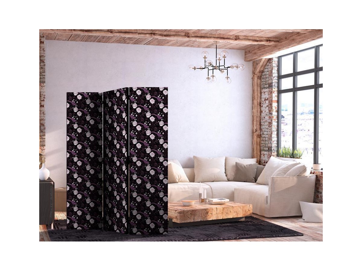 Les paravents décoratifs sont certainement une idée originale dans le domaine de la décoration intérieure. Les paravents remplissent un rôle décoratif, mais aussi bien pratique et fonctionnel. En effet, un paravent intérieur "Paravent - Birds Among Flowers - Pheasants Amidst Peonies - Purple" est un meuble formant une cloison amovible et repliable qui peut servir pour délimiter un espace et diviser une grande pièce en deux espaces séparés. Le paravent intérieur est une invention qui est apparue pour la première fois en Chine. Depuis le début de leur existence, les paravents remplissaient des différentes fonctions, comme protéger contre les courants d'air ou bien encore créer un espace isolé pour l'intimité. De nos jours, le paravent intérieur est une belle décoration intérieure, qui permet aussi de gérer l'espace d’une ou de plusieurs pièces selon notre volonté. Le paravent intérieur est également utilisé dans les locaux de service, comme un coiffeur, un cabinet médical ou un bureau comptable pour créer un espace propice à l’intimité ou bien encore à la concentration.