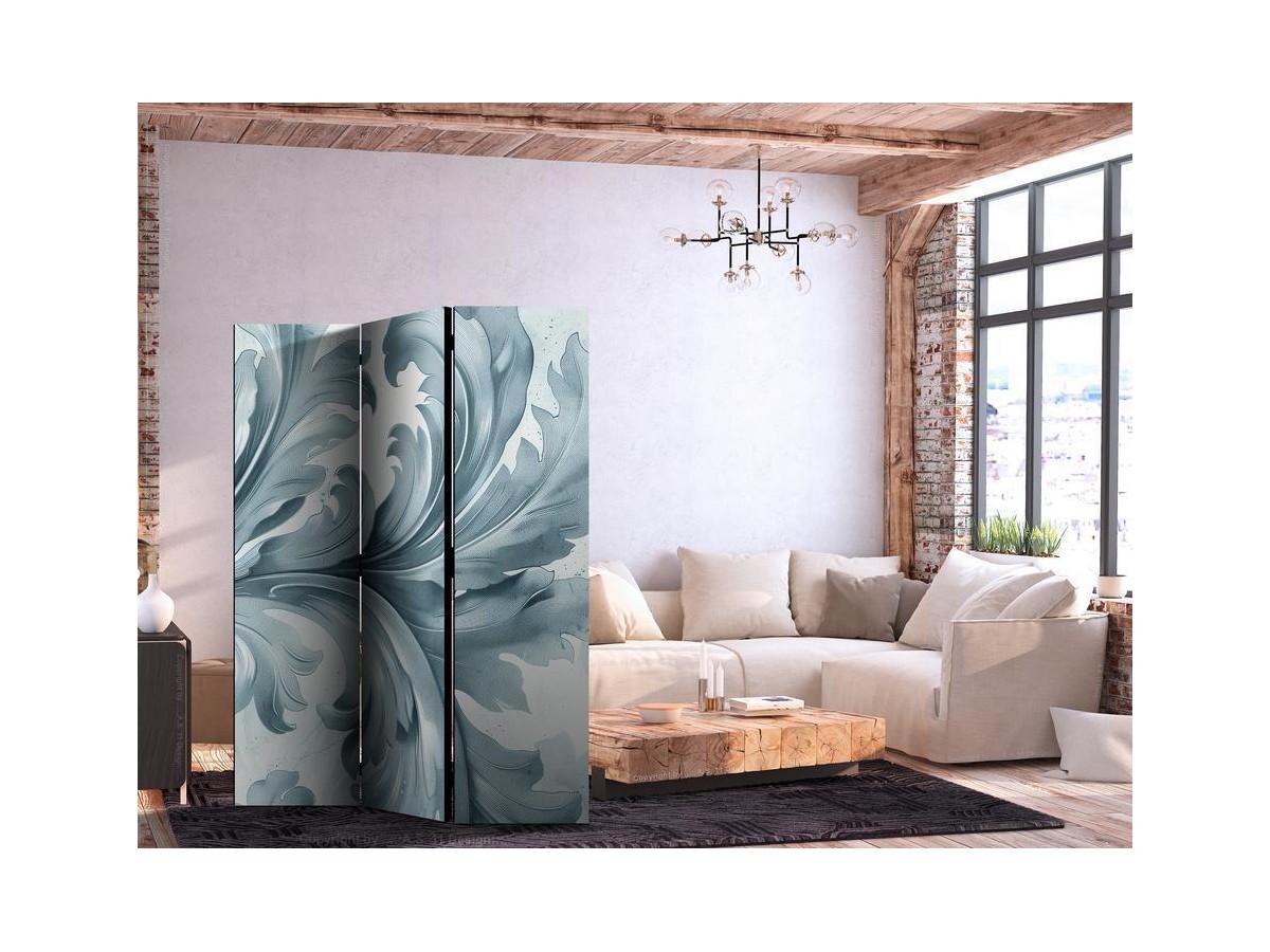 Paravent intérieur "Paravent - Stone Baroque Ornaments in Light Shades of Gray and Blue"Les paravents décoratifs sont certainement une idée originale dans le domaine de la décoration intérieure. Les paravents remplissent un rôle...