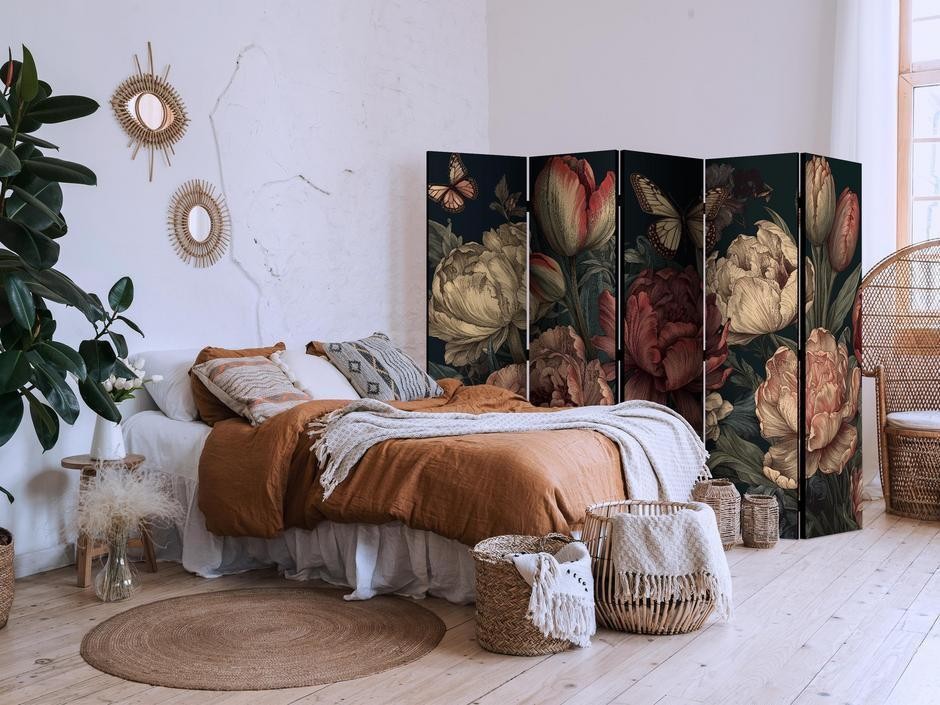 Un paravent décoratif "Paravent - Floral Illustration - Magnificent Flower Buds on a Turquoise Background" est composé de panneaux orientables, appelés volets, en bois encadrés d'un châssis de bois et réunis par des charnières. Le paravent décoratif disponible dans notre offre se compose de trois ou de cinq parties. Tous les paravents que nous proposons ont une impression de haute qualité sur l’entoilage qui peut être une belle décoration d'intérieur. L'entoilage d’un paravent déco est tendu sur un cadre en bois solide et léger en même temps. Les panneaux sont finis avec un ruban de satin. Les charnières métalliques sont durables et très solides.Caractéristique technique