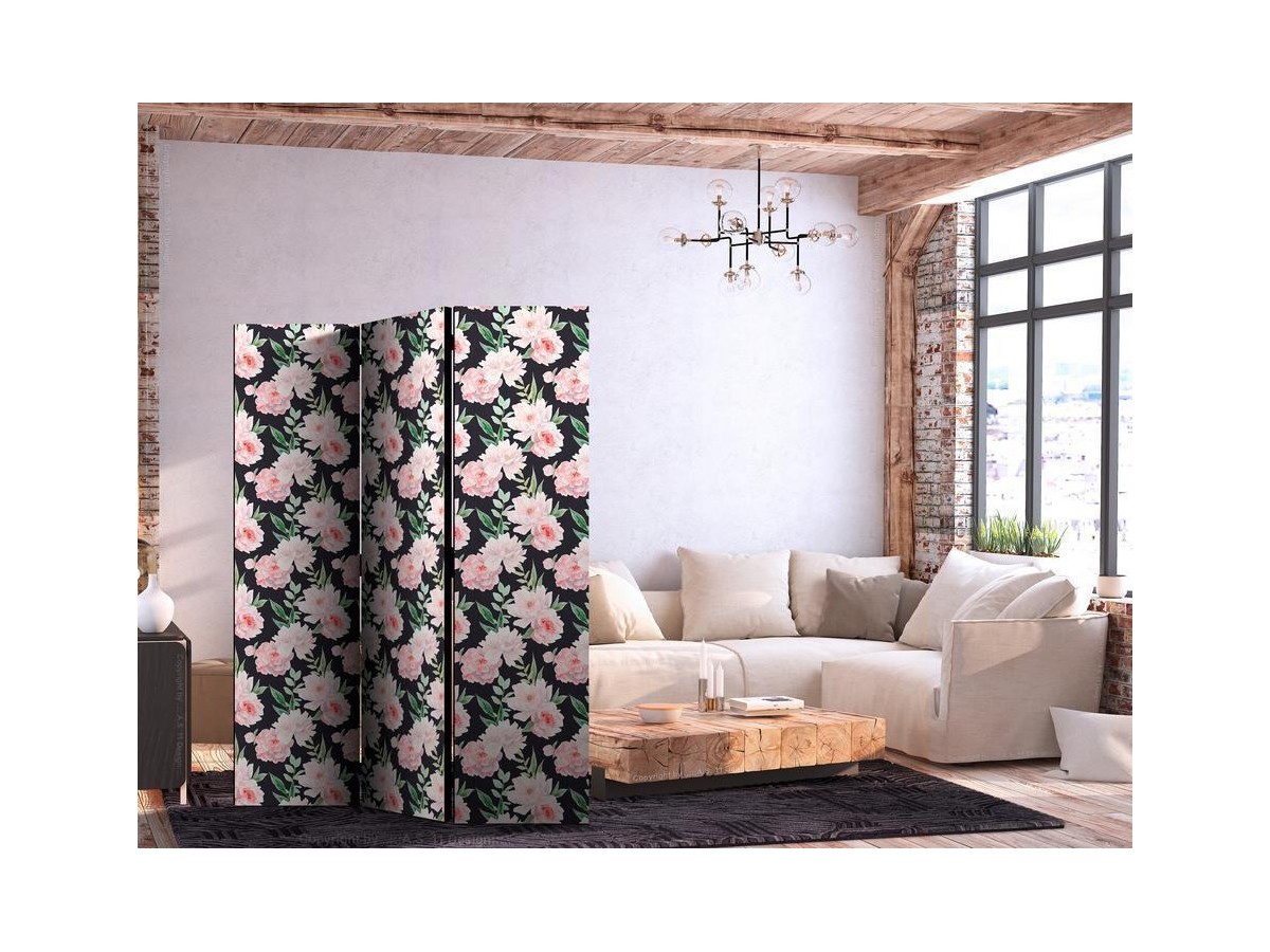 Les paravents décoratifs sont certainement une idée originale dans le domaine de la décoration intérieure. Les paravents remplissent un rôle décoratif, mais aussi bien pratique et fonctionnel. En effet, un paravent intérieur "Paravent - Peonies - Pink Flowers and Green Leaves on a Graphite Background" est un meuble formant une cloison amovible et repliable qui peut servir pour délimiter un espace et diviser une grande pièce en deux espaces séparés. Le paravent intérieur est une invention qui est apparue pour la première fois en Chine. Depuis le début de leur existence, les paravents remplissaient des différentes fonctions, comme protéger contre les courants d'air ou bien encore créer un espace isolé pour l'intimité. De nos jours, le paravent intérieur est une belle décoration intérieure, qui permet aussi de gérer l'espace d’une ou de plusieurs pièces selon notre volonté. Le paravent intérieur est également utilisé dans les locaux de service, comme un coiffeur, un cabinet médical ou un bureau comptable pour créer un espace propice à l’intimité ou bien encore à la concentration.