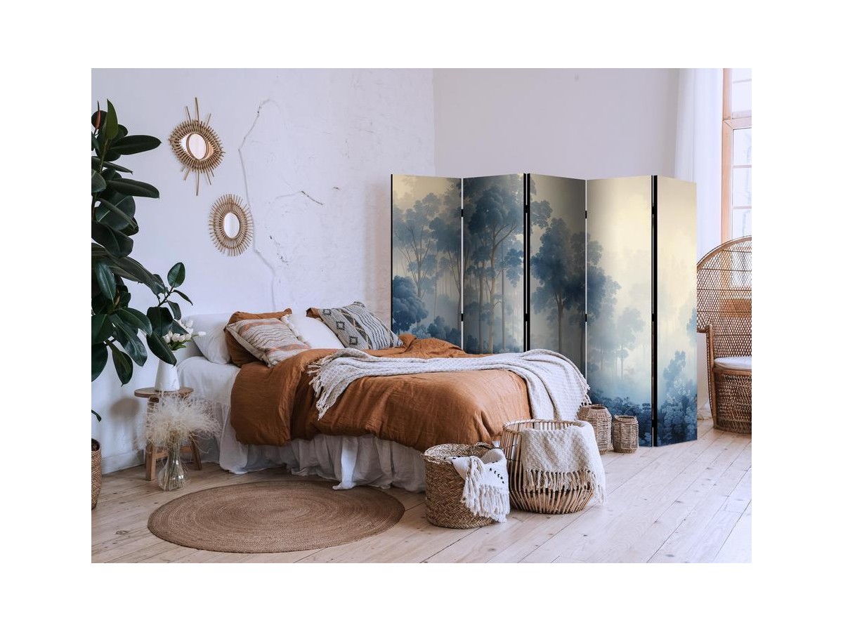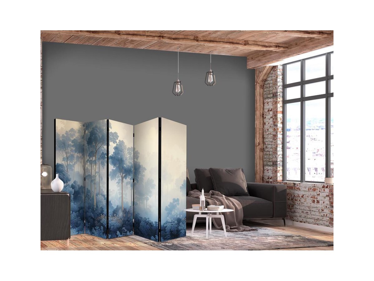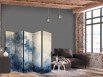 Les paravents décoratifs sont certainement une idée originale dans le domaine de la décoration intérieure. Les paravents remplissent un rôle décoratif, mais aussi bien pratique et fonctionnel. En effet, un paravent intérieur "Paravent - Landscape With Trees in Illustration Style. Fairy Blue Forest" est un meuble formant une cloison amovible et repliable qui peut servir pour délimiter un espace et diviser une grande pièce en deux espaces séparés. Le paravent intérieur est une invention qui est apparue pour la première fois en Chine. Depuis le début de leur existence, les paravents remplissaient des différentes fonctions, comme protéger contre les courants d'air ou bien encore créer un espace isolé pour l'intimité. De nos jours, le paravent intérieur est une belle décoration intérieure, qui permet aussi de gérer l'espace d’une ou de plusieurs pièces selon notre volonté. Le paravent intérieur est également utilisé dans les locaux de service, comme un coiffeur, un cabinet médical ou un bureau comptable pour créer un espace propice à l’intimité ou bien encore à la concentration.