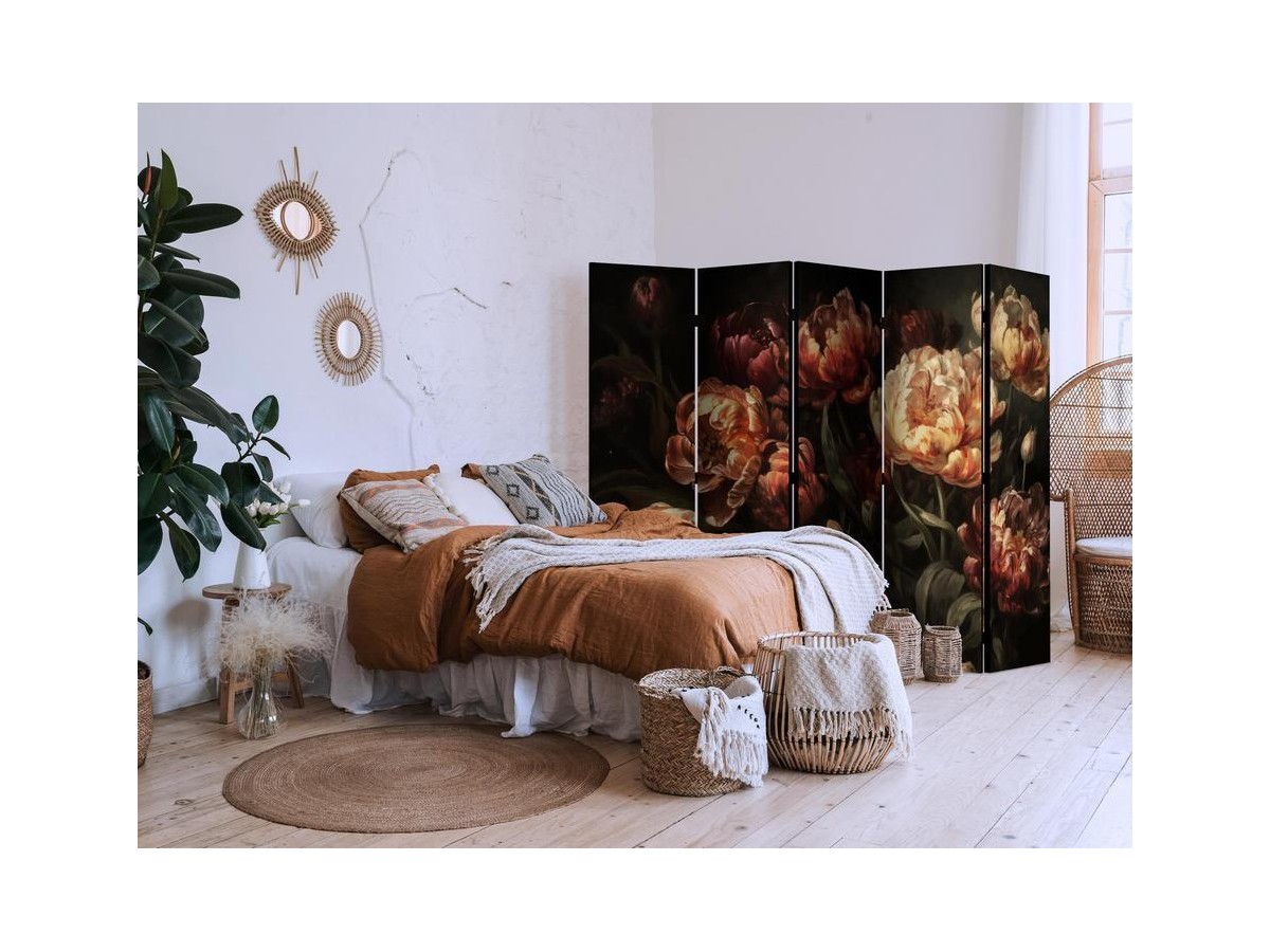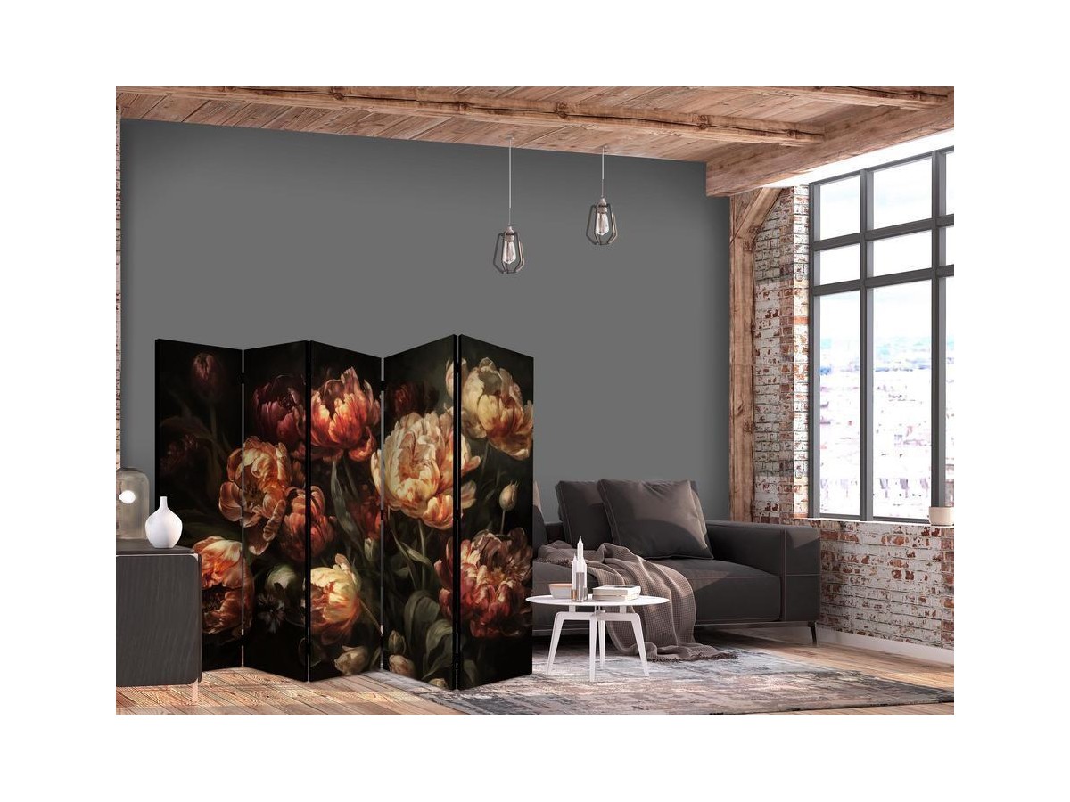 Les paravents décoratifs sont certainement une idée originale dans le domaine de la décoration intérieure. Les paravents remplissent un rôle décoratif, mais aussi bien pratique et fonctionnel. En effet, un paravent intérieur "Paravent - Magnificent Tulips - Bouquet of Flowers in Red and White on a Black Background" est un meuble formant une cloison amovible et repliable qui peut servir pour délimiter un espace et diviser une grande pièce en deux espaces séparés. Le paravent intérieur est une invention qui est apparue pour la première fois en Chine. Depuis le début de leur existence, les paravents remplissaient des différentes fonctions, comme protéger contre les courants d'air ou bien encore créer un espace isolé pour l'intimité. De nos jours, le paravent intérieur est une belle décoration intérieure, qui permet aussi de gérer l'espace d’une ou de plusieurs pièces selon notre volonté. Le paravent intérieur est également utilisé dans les locaux de service, comme un coiffeur, un cabinet médical ou un bureau comptable pour créer un espace propice à l’intimité ou bien encore à la concentration.