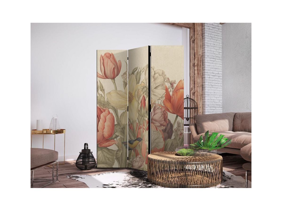 Paravent intérieur "Paravent - Bouquet with Tulips - Colorful Flowers on a Light Background - Illustration"Les paravents décoratifs sont certainement une idée originale dans le domaine de la décoration intérieure. Les paravents...