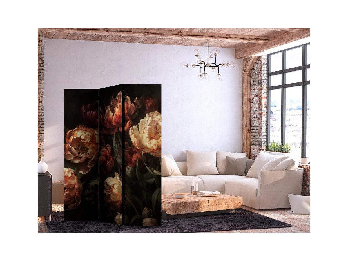 Les paravents décoratifs sont certainement une idée originale dans le domaine de la décoration intérieure. Les paravents remplissent un rôle décoratif, mais aussi bien pratique et fonctionnel. En effet, un paravent intérieur "Paravent - Magnificent Tulips - Bouquet of Flowers in Red and White on a Black Background" est un meuble formant une cloison amovible et repliable qui peut servir pour délimiter un espace et diviser une grande pièce en deux espaces séparés. Le paravent intérieur est une invention qui est apparue pour la première fois en Chine. Depuis le début de leur existence, les paravents remplissaient des différentes fonctions, comme protéger contre les courants d'air ou bien encore créer un espace isolé pour l'intimité. De nos jours, le paravent intérieur est une belle décoration intérieure, qui permet aussi de gérer l'espace d’une ou de plusieurs pièces selon notre volonté. Le paravent intérieur est également utilisé dans les locaux de service, comme un coiffeur, un cabinet médical ou un bureau comptable pour créer un espace propice à l’intimité ou bien encore à la concentration.