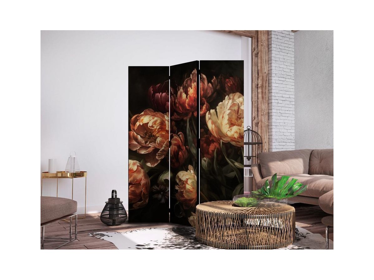Paravent intérieur "Paravent - Magnificent Tulips - Bouquet of Flowers in Red and White on a Black Background"Les paravents décoratifs sont certainement une idée originale dans le domaine de la décoration intérieure. Les paravents...