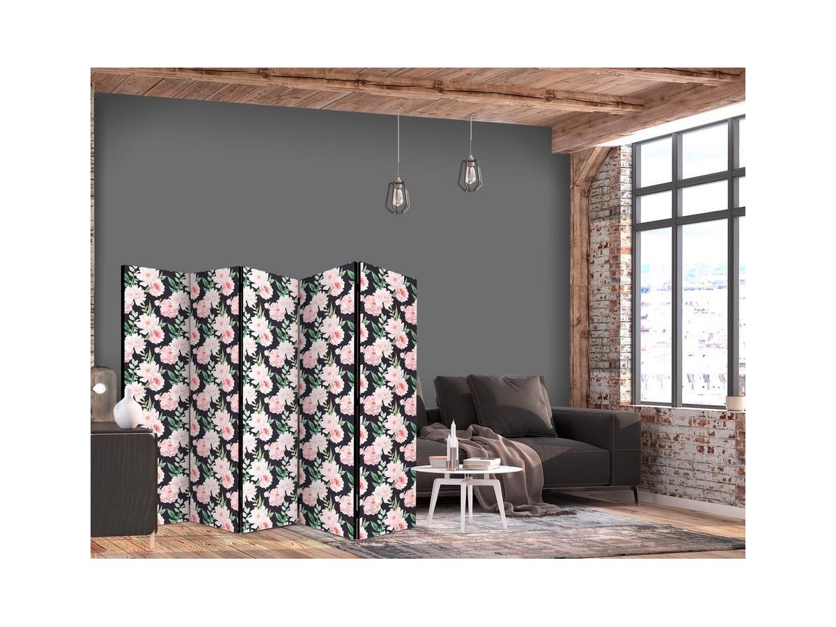 Les paravents décoratifs sont certainement une idée originale dans le domaine de la décoration intérieure. Les paravents remplissent un rôle décoratif, mais aussi bien pratique et fonctionnel. En effet, un paravent intérieur "Paravent - Peonies - Pink Flowers and Green Leaves on a Graphite Background" est un meuble formant une cloison amovible et repliable qui peut servir pour délimiter un espace et diviser une grande pièce en deux espaces séparés. Le paravent intérieur est une invention qui est apparue pour la première fois en Chine. Depuis le début de leur existence, les paravents remplissaient des différentes fonctions, comme protéger contre les courants d'air ou bien encore créer un espace isolé pour l'intimité. De nos jours, le paravent intérieur est une belle décoration intérieure, qui permet aussi de gérer l'espace d’une ou de plusieurs pièces selon notre volonté. Le paravent intérieur est également utilisé dans les locaux de service, comme un coiffeur, un cabinet médical ou un bureau comptable pour créer un espace propice à l’intimité ou bien encore à la concentration.