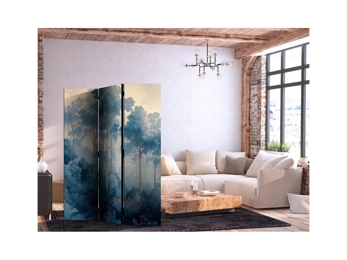 Les paravents décoratifs sont certainement une idée originale dans le domaine de la décoration intérieure. Les paravents remplissent un rôle décoratif, mais aussi bien pratique et fonctionnel. En effet, un paravent intérieur "Paravent - Landscape With Trees in Illustration Style. Fairy Blue Forest" est un meuble formant une cloison amovible et repliable qui peut servir pour délimiter un espace et diviser une grande pièce en deux espaces séparés. Le paravent intérieur est une invention qui est apparue pour la première fois en Chine. Depuis le début de leur existence, les paravents remplissaient des différentes fonctions, comme protéger contre les courants d'air ou bien encore créer un espace isolé pour l'intimité. De nos jours, le paravent intérieur est une belle décoration intérieure, qui permet aussi de gérer l'espace d’une ou de plusieurs pièces selon notre volonté. Le paravent intérieur est également utilisé dans les locaux de service, comme un coiffeur, un cabinet médical ou un bureau comptable pour créer un espace propice à l’intimité ou bien encore à la concentration.