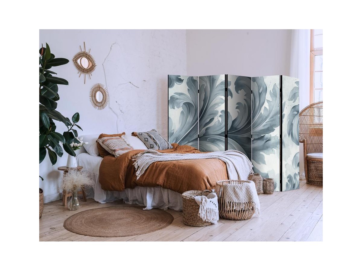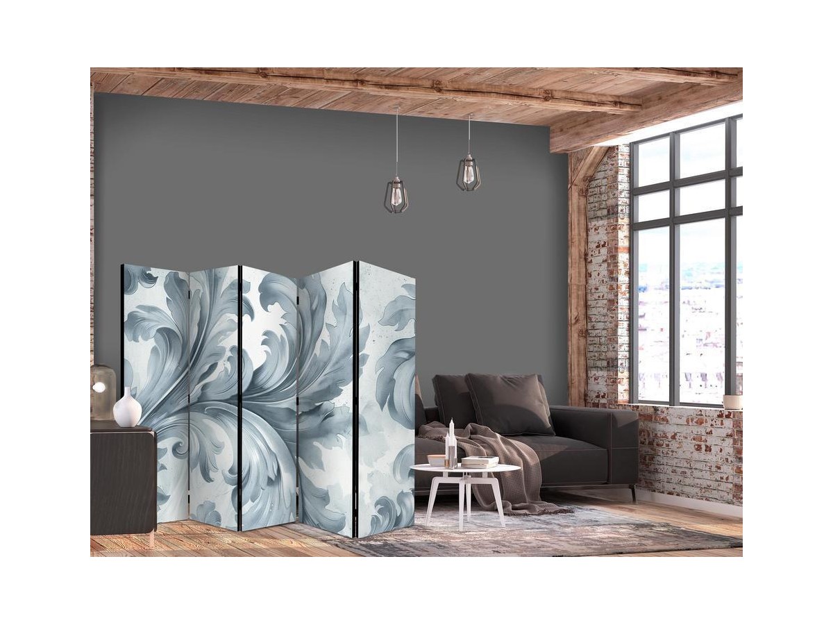 Paravent intérieur "Paravent - Stone Baroque Ornaments in Light Shades of Gray and Blue"Les paravents décoratifs sont certainement une idée originale dans le domaine de la décoration intérieure. Les paravents remplissent un rôle...