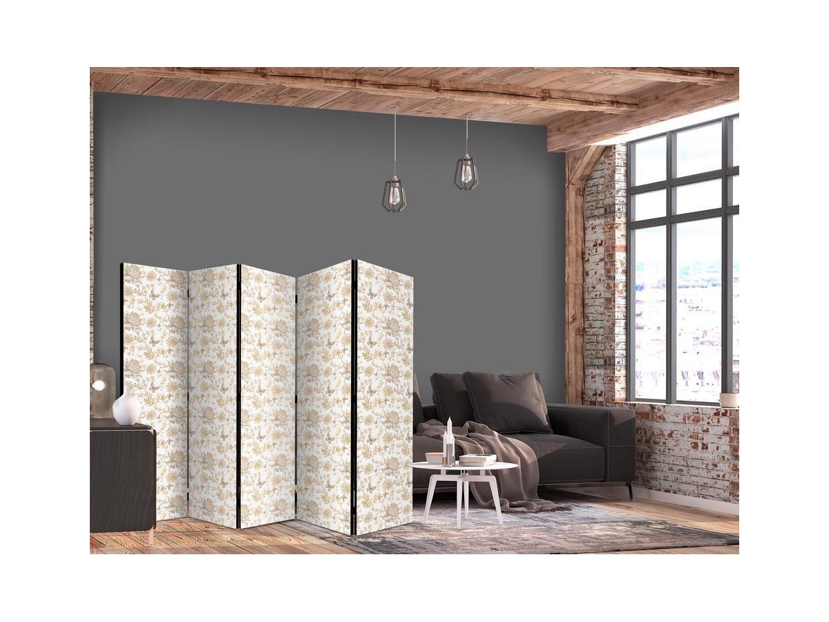 Paravent intérieur "Paravent - Beige Shades of Nature - Flowers and Butterflies on a White Background - Illustration"Les paravents décoratifs sont certainement une idée originale dans le domaine de la décoration intérieure. Les...