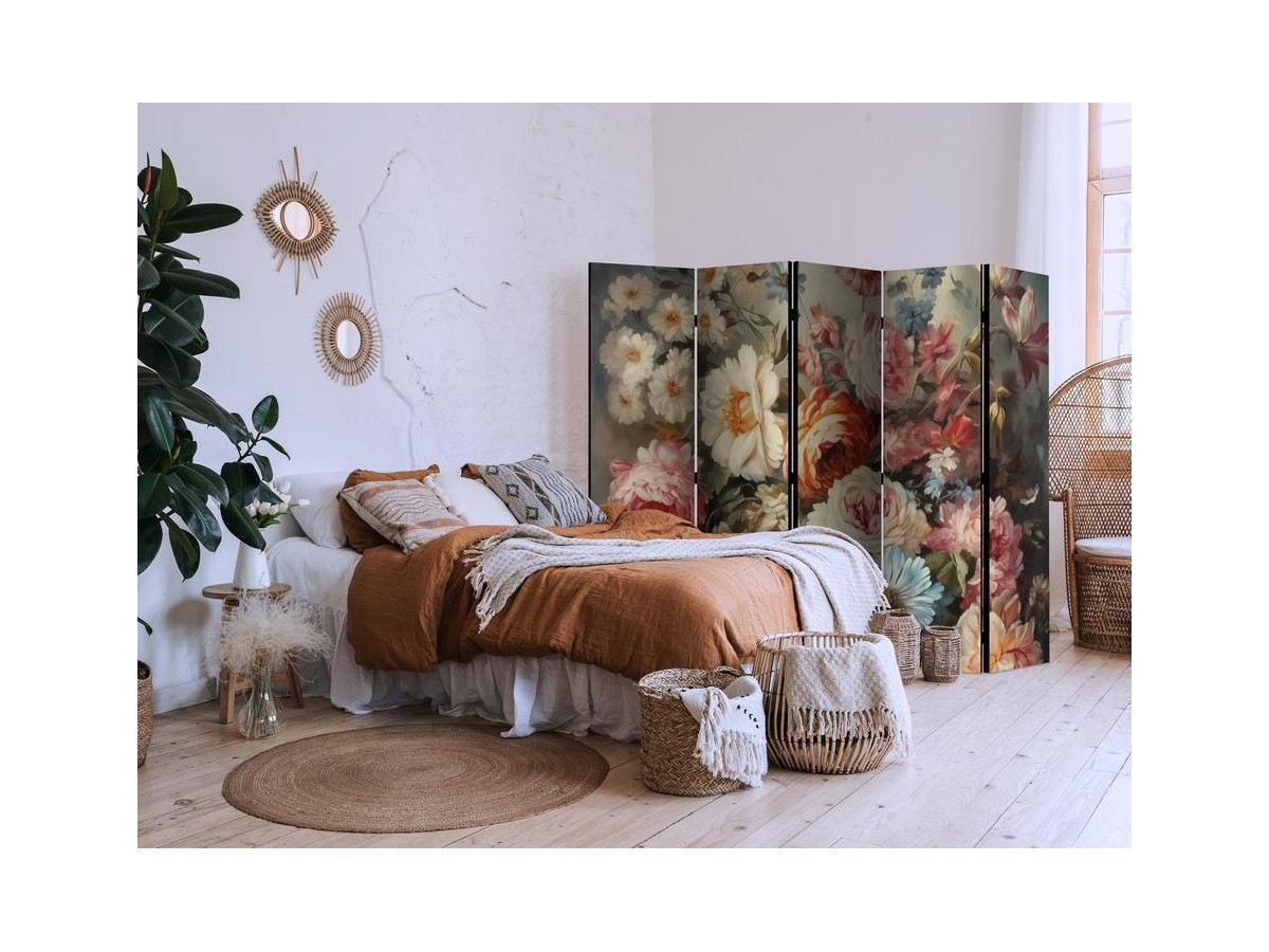 Les paravents décoratifs sont certainement une idée originale dans le domaine de la décoration intérieure. Les paravents remplissent un rôle décoratif, mais aussi bien pratique et fonctionnel. En effet, un paravent intérieur "Paravent - Scent of Nature - Beautiful Garden Flowers in Pastel Colors" est un meuble formant une cloison amovible et repliable qui peut servir pour délimiter un espace et diviser une grande pièce en deux espaces séparés. Le paravent intérieur est une invention qui est apparue pour la première fois en Chine. Depuis le début de leur existence, les paravents remplissaient des différentes fonctions, comme protéger contre les courants d'air ou bien encore créer un espace isolé pour l'intimité. De nos jours, le paravent intérieur est une belle décoration intérieure, qui permet aussi de gérer l'espace d’une ou de plusieurs pièces selon notre volonté. Le paravent intérieur est également utilisé dans les locaux de service, comme un coiffeur, un cabinet médical ou un bureau comptable pour créer un espace propice à l’intimité ou bien encore à la concentration.