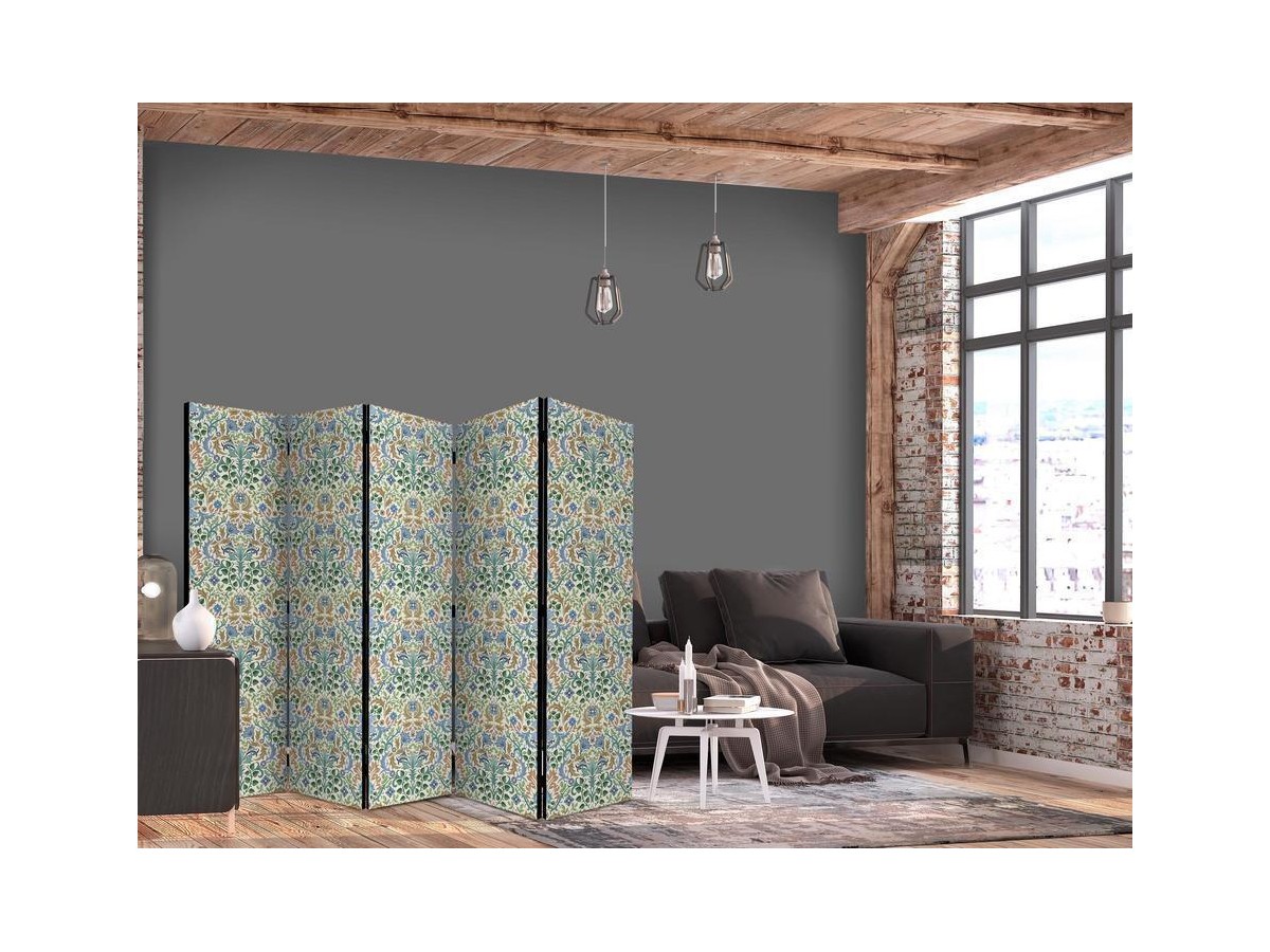 Un paravent décoratif "Paravent - Retro Vintage Intricate and Rich Pattern in Victorian Style." est composé de panneaux orientables, appelés volets, en bois encadrés d'un châssis de bois et réunis par des charnières. Le paravent décoratif disponible dans notre offre se compose de trois ou de cinq parties. Tous les paravents que nous proposons ont une impression de haute qualité sur l’entoilage qui peut être une belle décoration d'intérieur. L'entoilage d’un paravent déco est tendu sur un cadre en bois solide et léger en même temps. Les panneaux sont finis avec un ruban de satin. Les charnières métalliques sont durables et très solides.Caractéristique technique