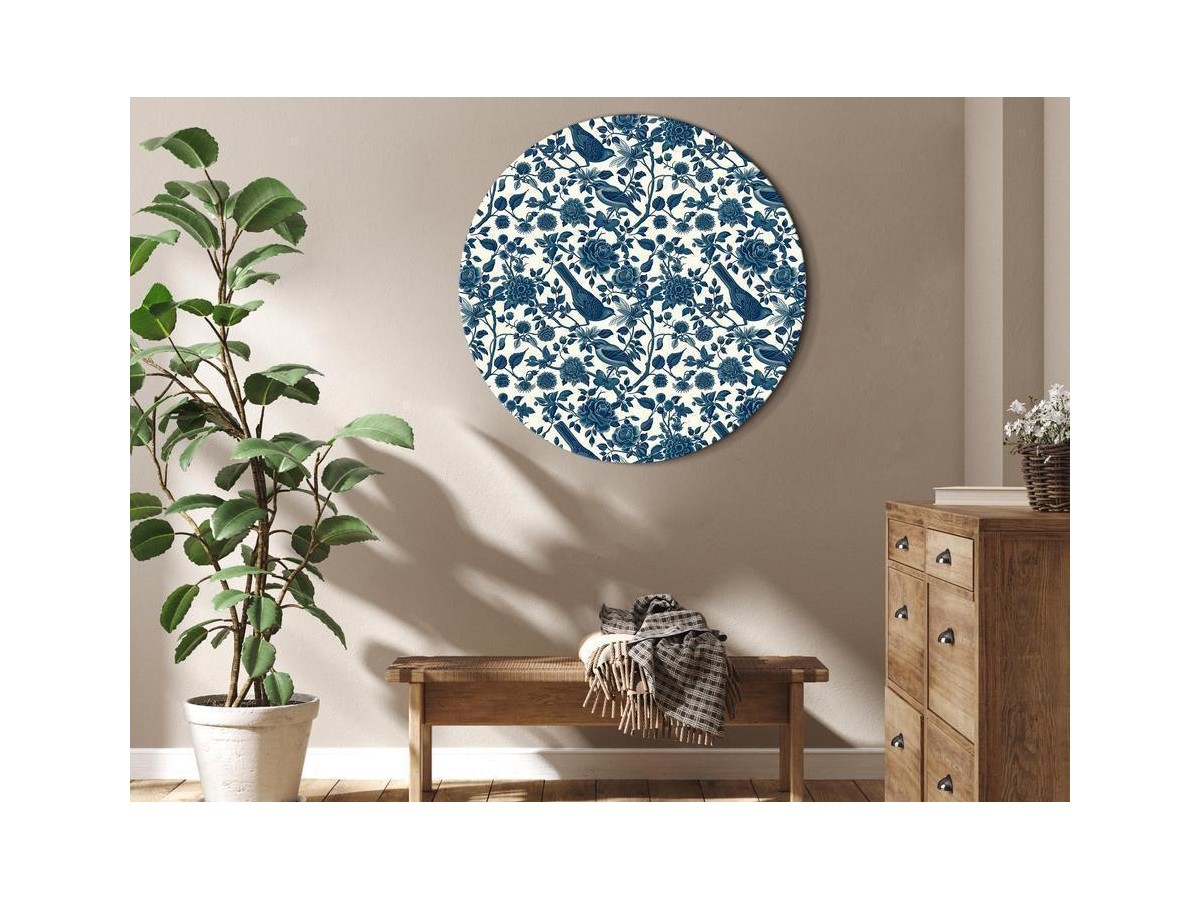 Tableaux ronds comme décoration hors du communLe tableau rond ? Pourquoi pas ! Hors du commun et se distinguant des autres produits sur le marché, le tableau rond "Tableau rond - Birds and roses - monochrome blue pattern with botanical...