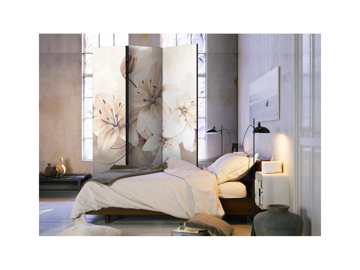 Les paravents décoratifs sont certainement une idée originale dans le domaine de la décoration intérieure. Les paravents remplissent un rôle décoratif, mais aussi bien pratique et fonctionnel. En effet, un paravent intérieur "Paravent - Diamond Lilies" est un meuble formant une cloison amovible et repliable qui peut servir pour délimiter un espace et diviser une grande pièce en deux espaces séparés. Le paravent intérieur est une invention qui est apparue pour la première fois en Chine. Depuis le début de leur existence, les paravents remplissaient des différentes fonctions, comme protéger contre les courants d'air ou bien encore créer un espace isolé pour l'intimité. De nos jours, le paravent intérieur est une belle décoration intérieure, qui permet aussi de gérer l'espace d’une ou de plusieurs pièces selon notre volonté. Le paravent intérieur est également utilisé dans les locaux de service, comme un coiffeur, un cabinet médical ou un bureau comptable pour créer un espace propice à l’intimité ou bien encore à la concentration.
