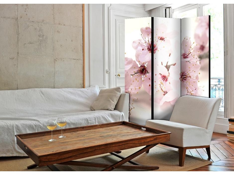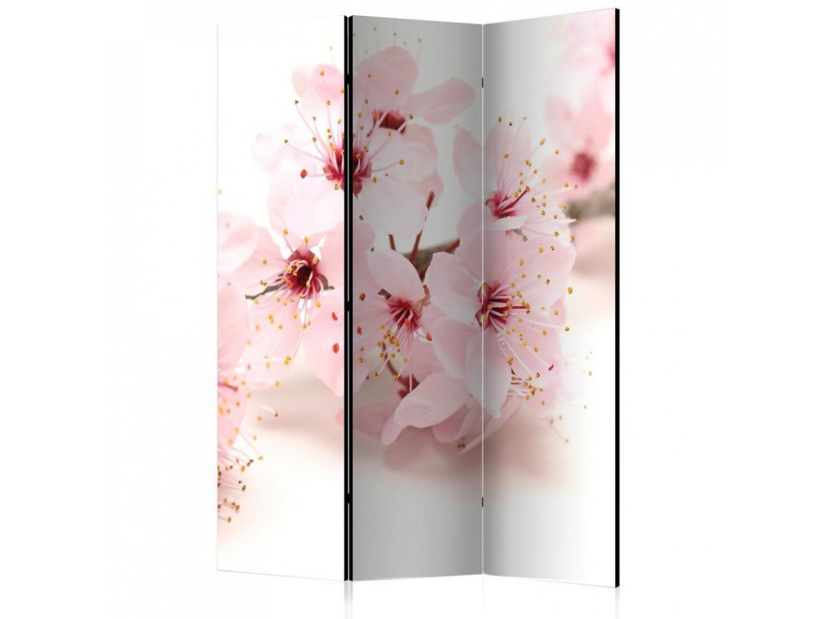 Un paravent décoratif "Paravent - Cherry Blossom" est composé de panneaux orientables, appelés volets, en bois encadrés d'un châssis de bois et réunis par des charnières. Le paravent décoratif disponible dans notre offre se compose de trois ou de cinq parties. Tous les paravents que nous proposons ont une impression de haute qualité sur l’entoilage qui peut être une belle décoration d'intérieur. L'entoilage d’un paravent déco est tendu sur un cadre en bois solide et léger en même temps. Les panneaux sont finis avec un ruban de satin. Les charnières métalliques sont durables et très solides.Caractéristique technique
