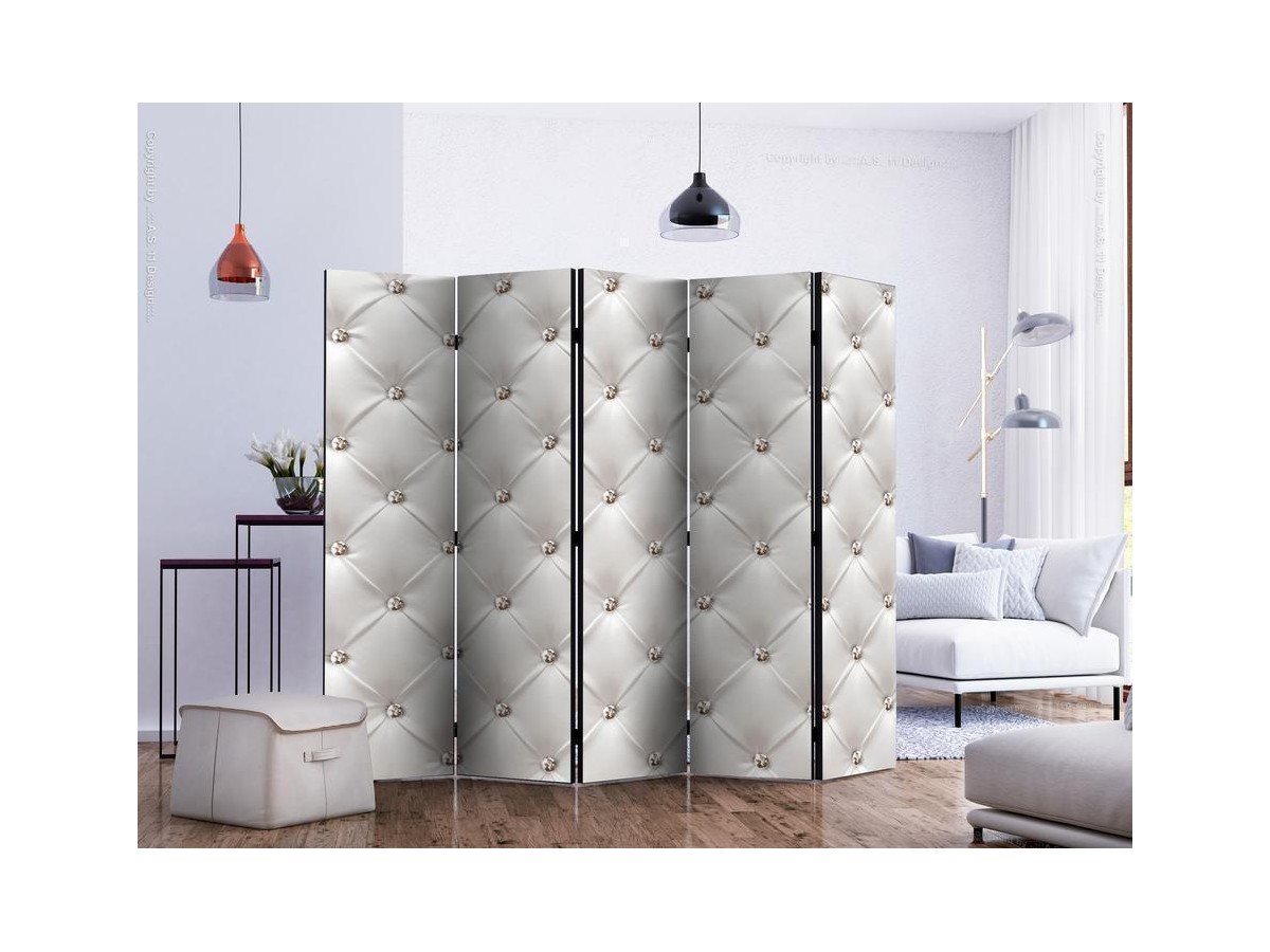Un paravent décoratif "Paravent - White Elegance II" est composé de panneaux orientables, appelés volets, en bois encadrés d'un châssis de bois et réunis par des charnières. Le paravent décoratif disponible dans notre offre se compose de trois ou de cinq parties. Tous les paravents que nous proposons ont une impression de haute qualité sur l’entoilage qui peut être une belle décoration d'intérieur. L'entoilage d’un paravent déco est tendu sur un cadre en bois solide et léger en même temps. Les panneaux sont finis avec un ruban de satin. Les charnières métalliques sont durables et très solides.Caractéristique technique