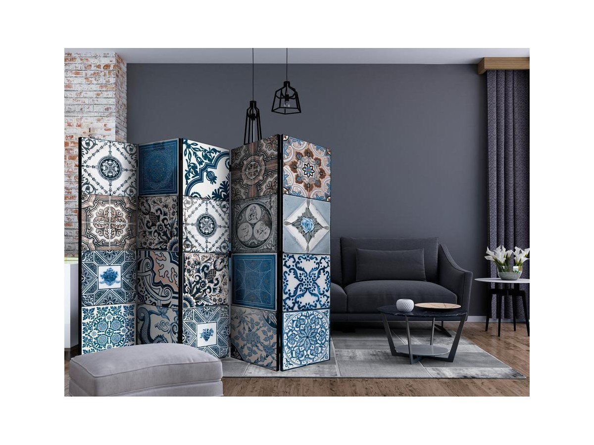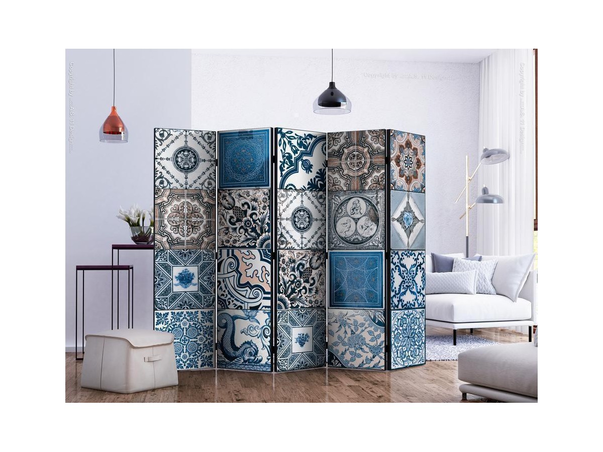 Les paravents décoratifs sont certainement une idée originale dans le domaine de la décoration intérieure. Les paravents remplissent un rôle décoratif, mais aussi bien pratique et fonctionnel. En effet, un paravent intérieur "Paravent - Blue Arabesque II" est un meuble formant une cloison amovible et repliable qui peut servir pour délimiter un espace et diviser une grande pièce en deux espaces séparés. Le paravent intérieur est une invention qui est apparue pour la première fois en Chine. Depuis le début de leur existence, les paravents remplissaient des différentes fonctions, comme protéger contre les courants d'air ou bien encore créer un espace isolé pour l'intimité. De nos jours, le paravent intérieur est une belle décoration intérieure, qui permet aussi de gérer l'espace d’une ou de plusieurs pièces selon notre volonté. Le paravent intérieur est également utilisé dans les locaux de service, comme un coiffeur, un cabinet médical ou un bureau comptable pour créer un espace propice à l’intimité ou bien encore à la concentration.