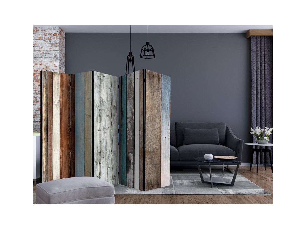 Les paravents décoratifs sont certainement une idée originale dans le domaine de la décoration intérieure. Les paravents remplissent un rôle décoratif, mais aussi bien pratique et fonctionnel. En effet, un paravent intérieur "Paravent - Colors Arranged II" est un meuble formant une cloison amovible et repliable qui peut servir pour délimiter un espace et diviser une grande pièce en deux espaces séparés. Le paravent intérieur est une invention qui est apparue pour la première fois en Chine. Depuis le début de leur existence, les paravents remplissaient des différentes fonctions, comme protéger contre les courants d'air ou bien encore créer un espace isolé pour l'intimité. De nos jours, le paravent intérieur est une belle décoration intérieure, qui permet aussi de gérer l'espace d’une ou de plusieurs pièces selon notre volonté. Le paravent intérieur est également utilisé dans les locaux de service, comme un coiffeur, un cabinet médical ou un bureau comptable pour créer un espace propice à l’intimité ou bien encore à la concentration.