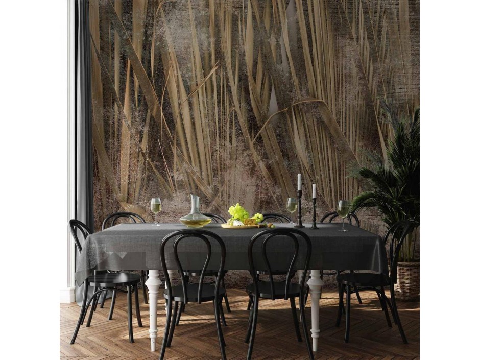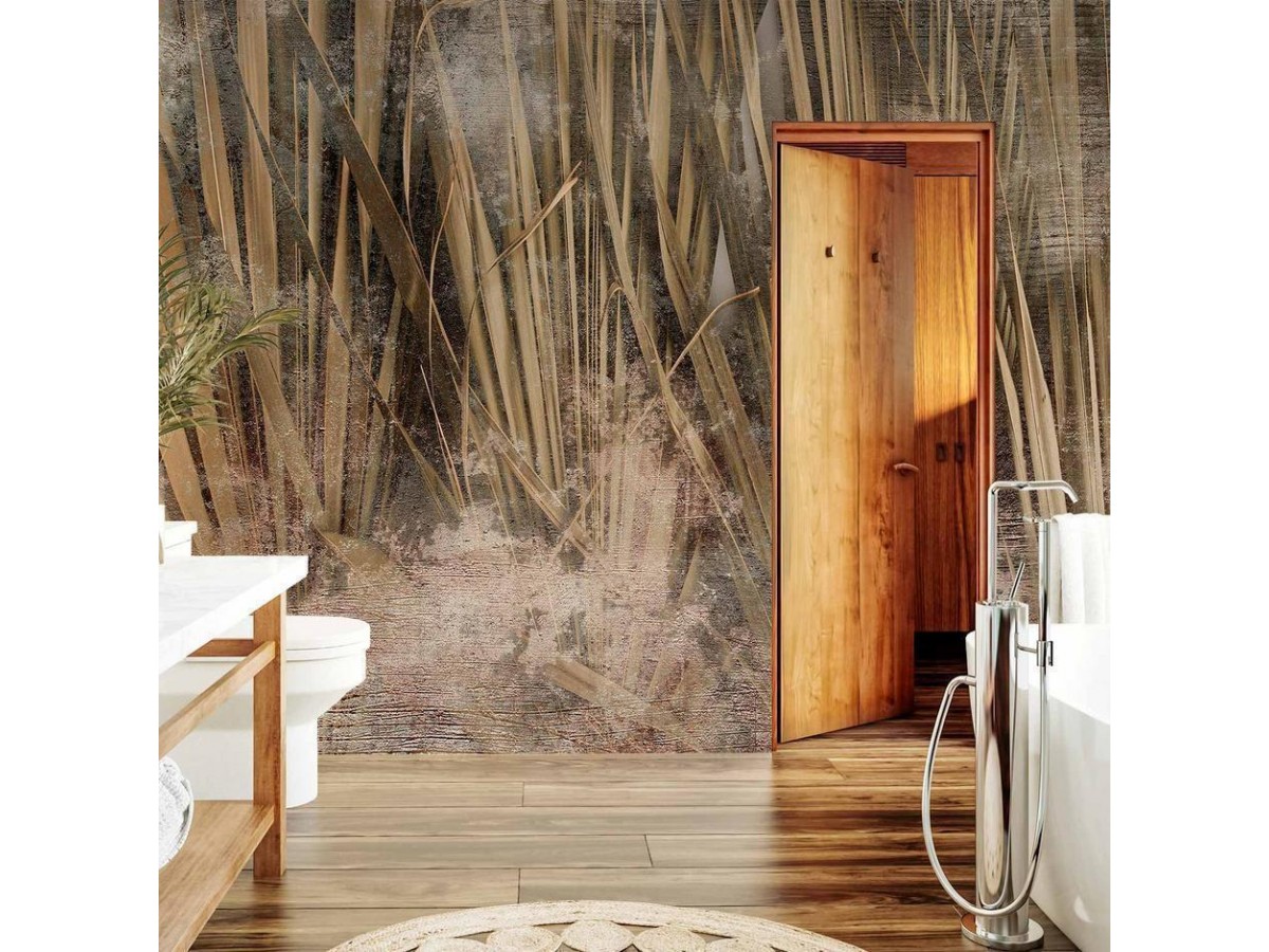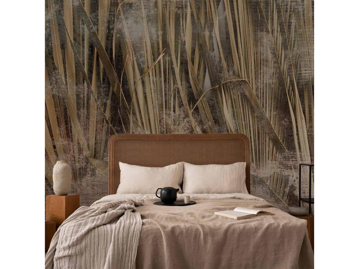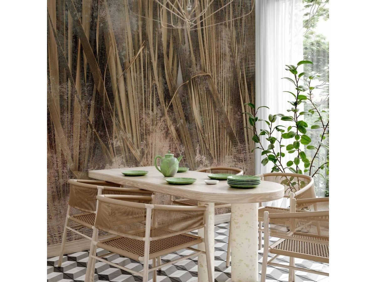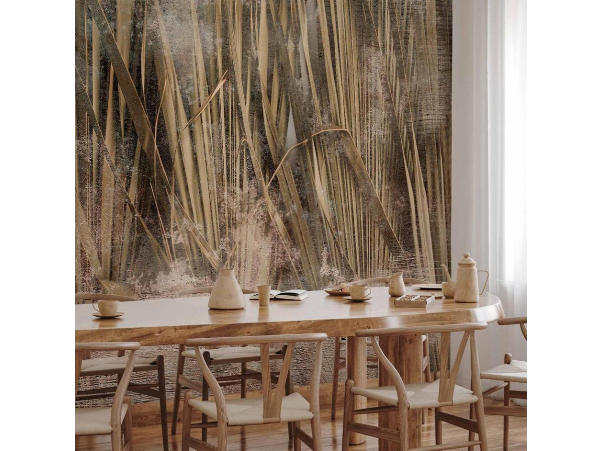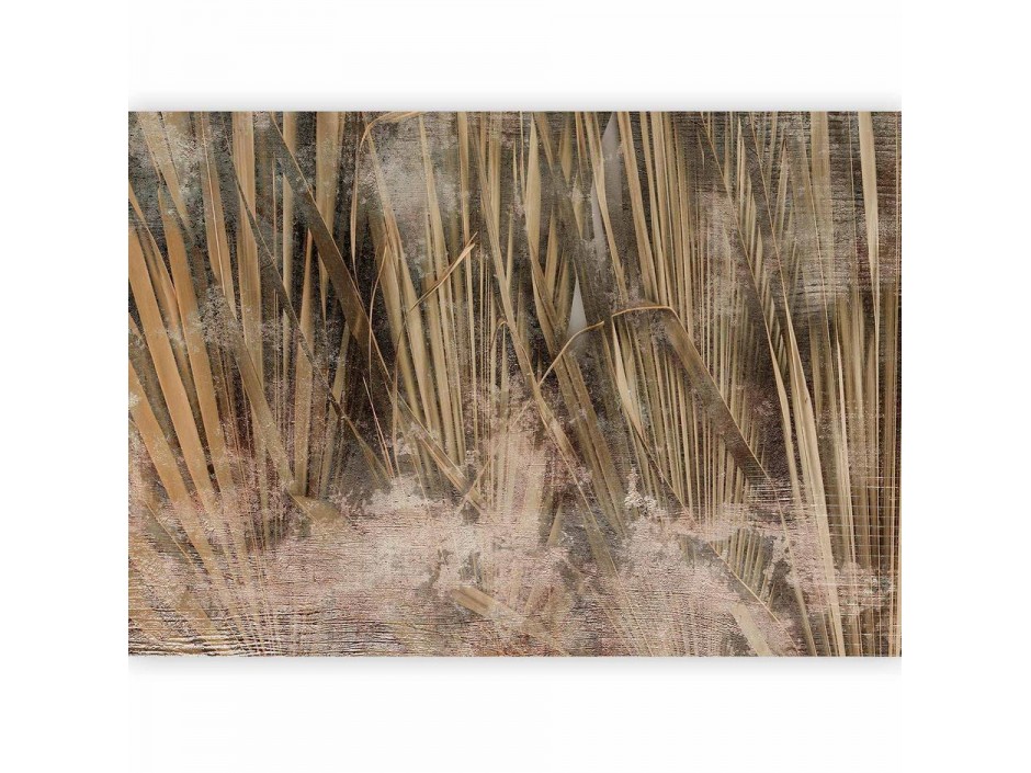 Papier peint - Dry leaves - landscape of tall grasses in boho style with paint patterns