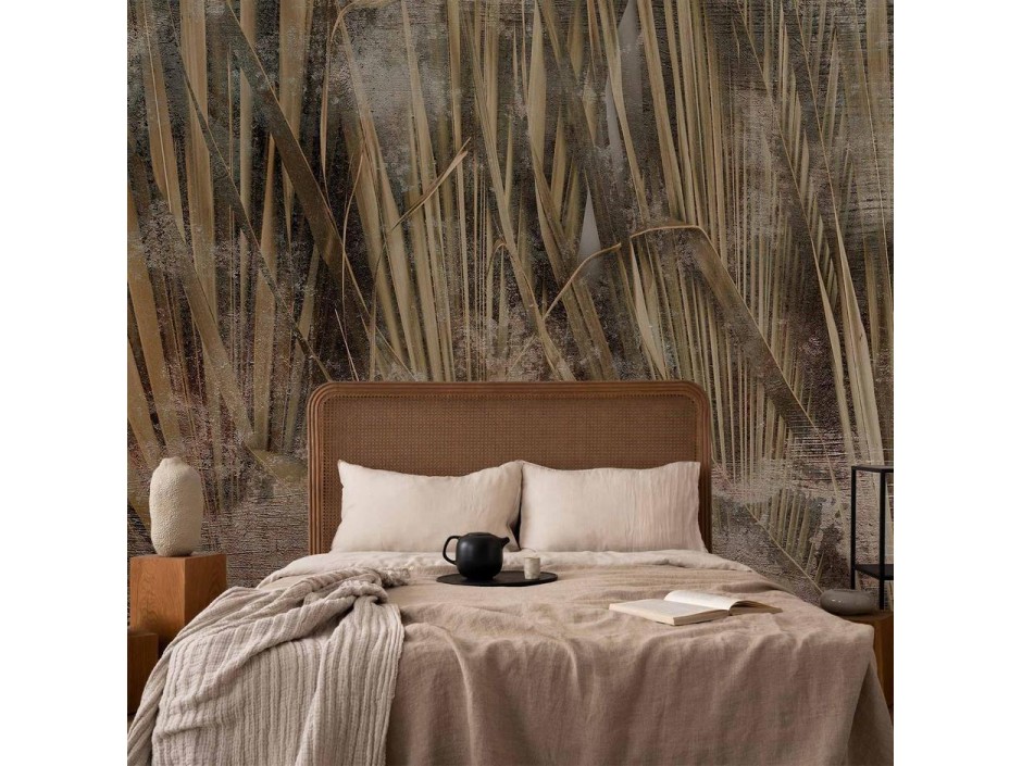 Papier peintUn "Papier peint - Dry leaves - landscape of tall grasses in boho style with paint patterns" disponible dans notre offre est une solution simple et rapide pour des personnes qui veulent redonner une nouvelle vie à leur...