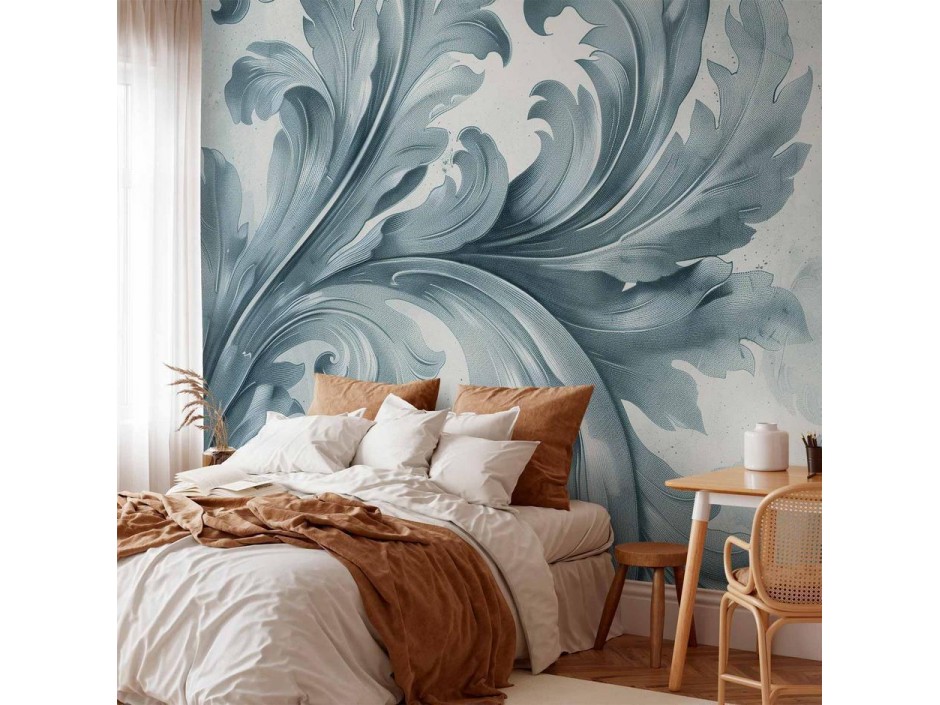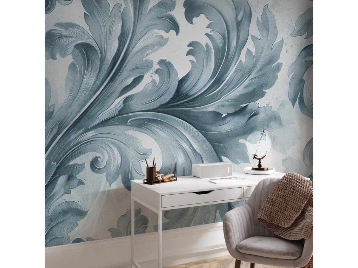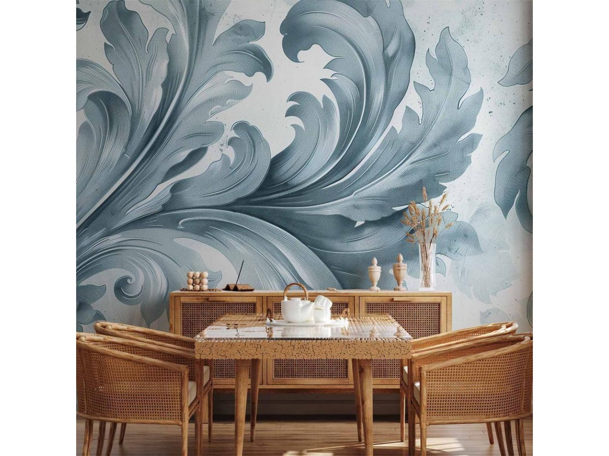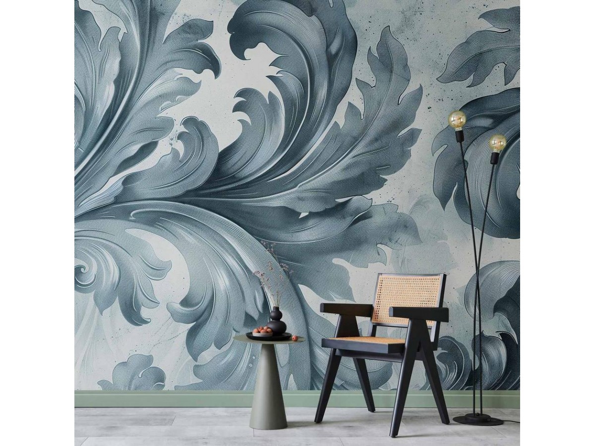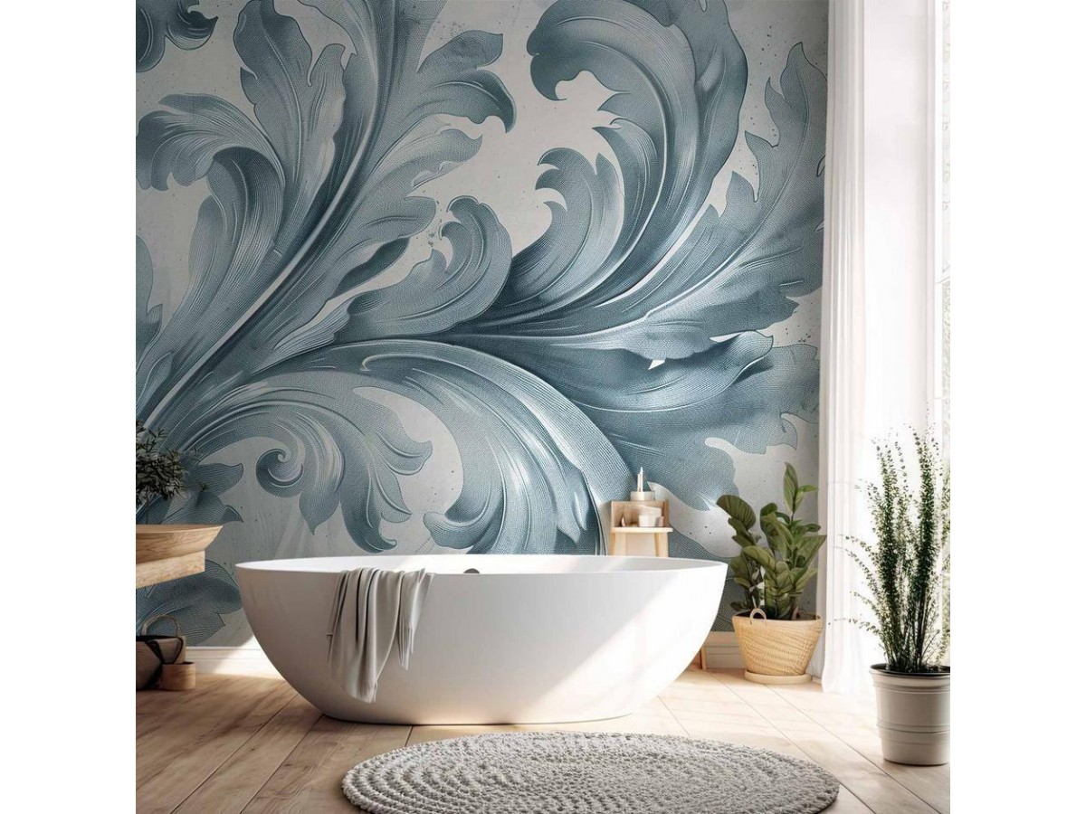 Papier peint - Stone Baroque Ornaments in Light Shades of Gray-Blue