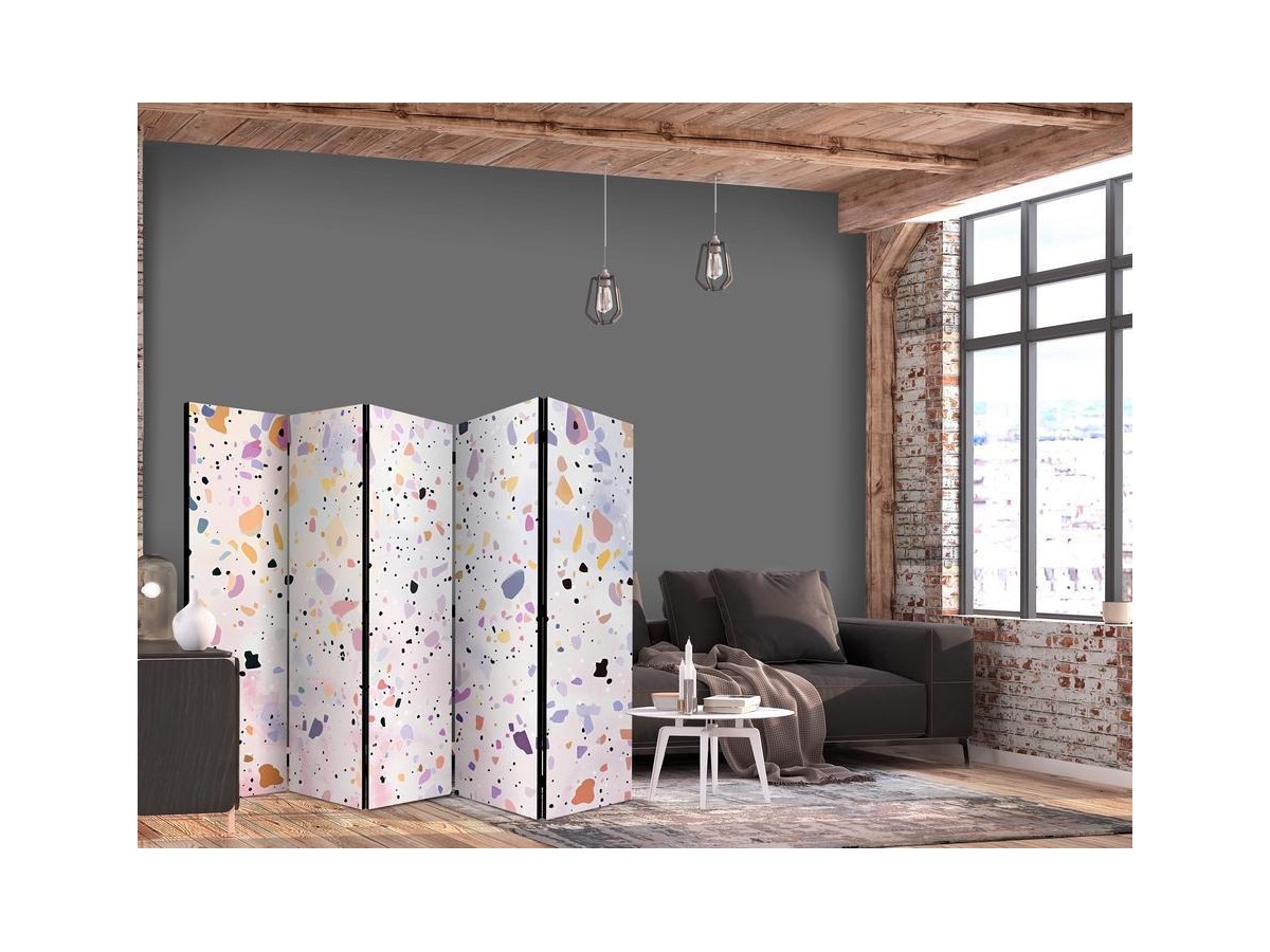 Les paravents décoratifs sont certainement une idée originale dans le domaine de la décoration intérieure. Les paravents remplissent un rôle décoratif, mais aussi bien pratique et fonctionnel. En effet, un paravent intérieur "Paravent - Terrazzo in Confetti Style - Violet-Pink - Colorful Pattern" est un meuble formant une cloison amovible et repliable qui peut servir pour délimiter un espace et diviser une grande pièce en deux espaces séparés. Le paravent intérieur est une invention qui est apparue pour la première fois en Chine. Depuis le début de leur existence, les paravents remplissaient des différentes fonctions, comme protéger contre les courants d'air ou bien encore créer un espace isolé pour l'intimité. De nos jours, le paravent intérieur est une belle décoration intérieure, qui permet aussi de gérer l'espace d’une ou de plusieurs pièces selon notre volonté. Le paravent intérieur est également utilisé dans les locaux de service, comme un coiffeur, un cabinet médical ou un bureau comptable pour créer un espace propice à l’intimité ou bien encore à la concentration.