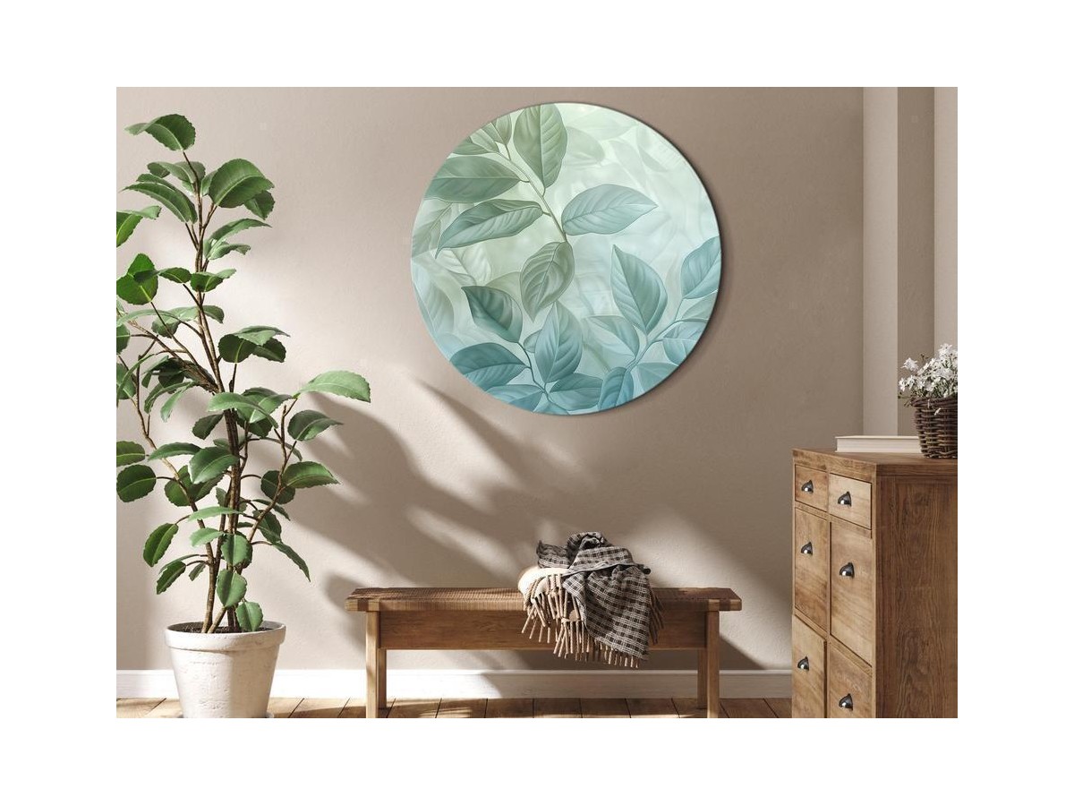 Tableau rond - Large Leaves in Shades of Green-Mint: Botanical Motif