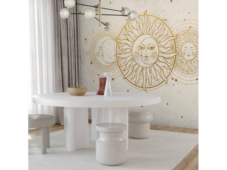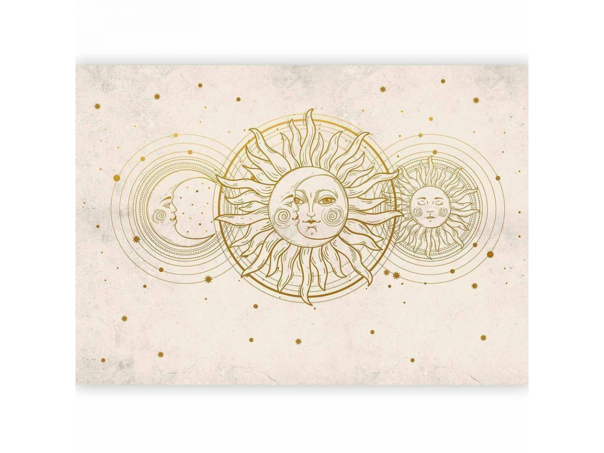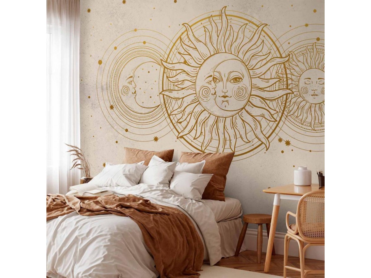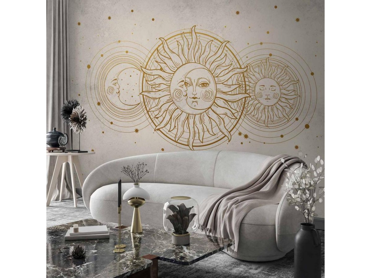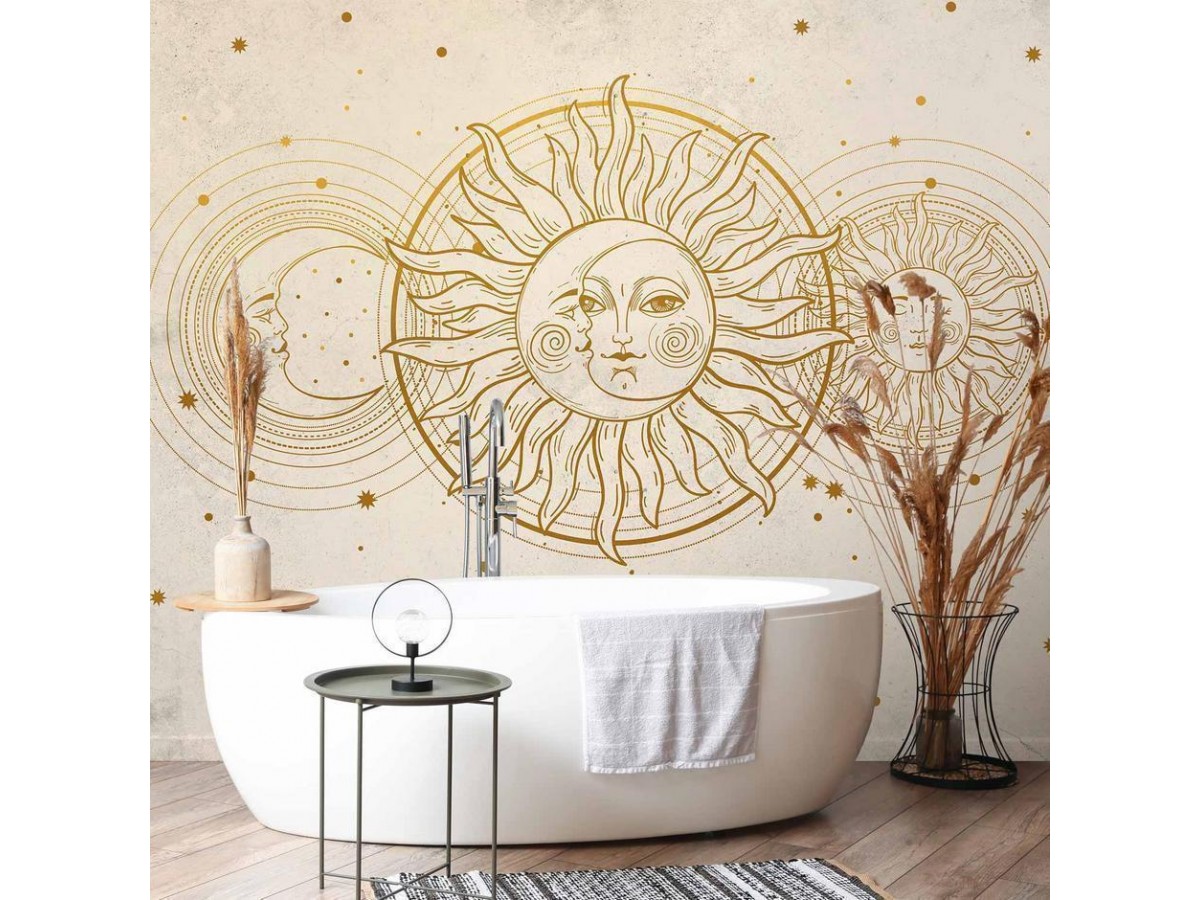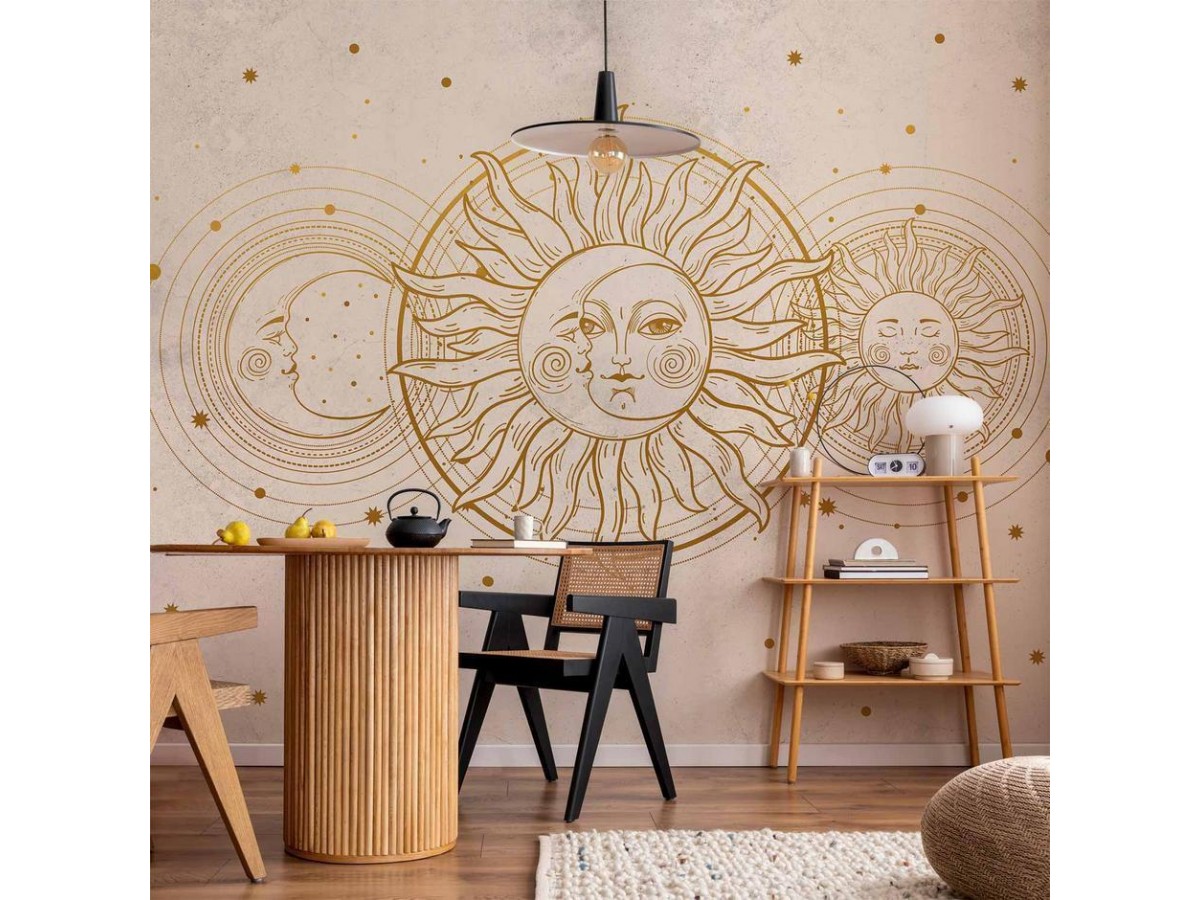 Papier peint - Golden Sun and Moon - Artistic Illustration in Retro Style