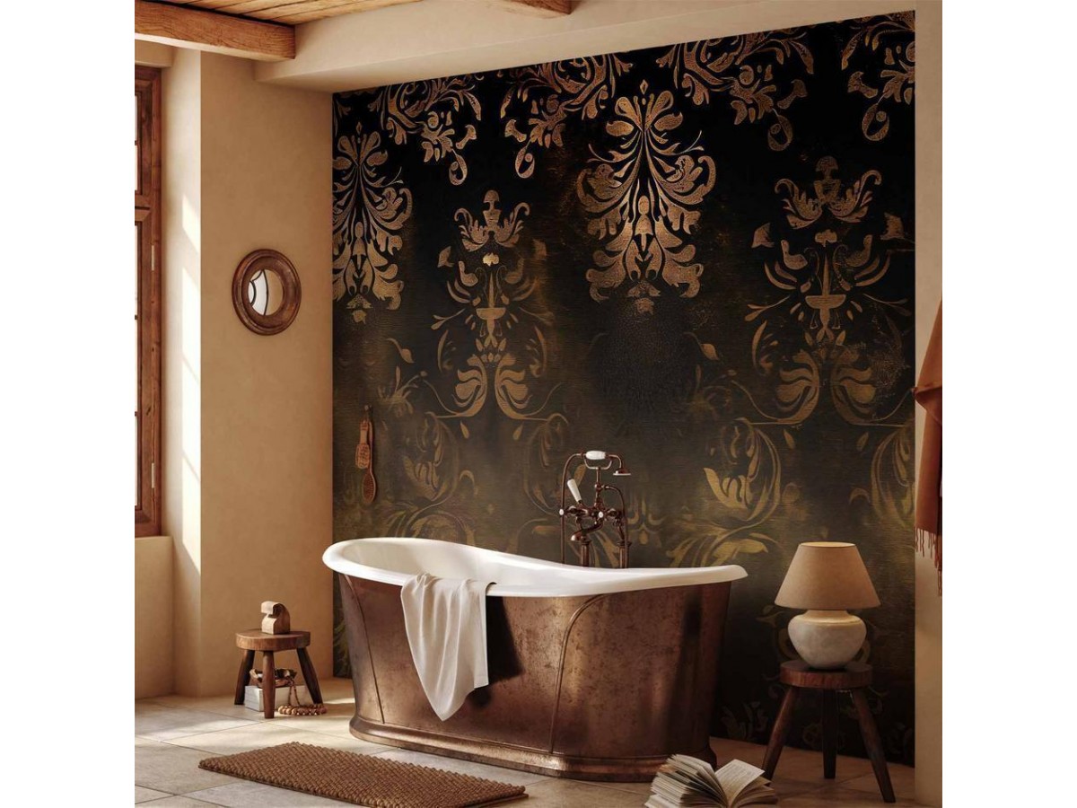 Papier peint - Baroque Ornaments in Patinated Gold and Browns: Retro Motif