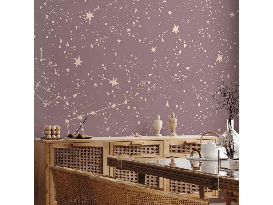 Papier peint - Night Sky - Artistic Constellations and Stars in Pastel Shades
